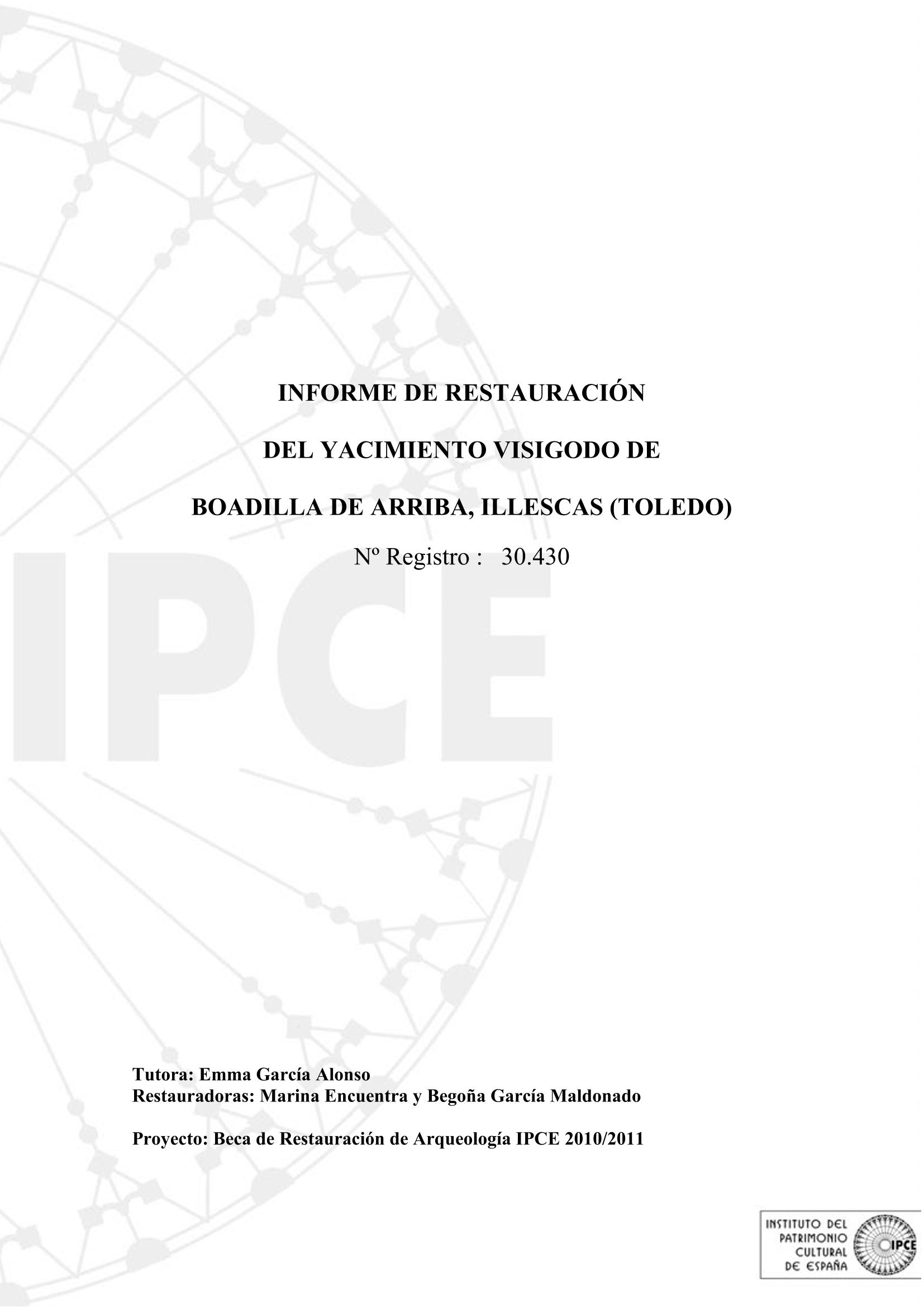 Restauración del ajuar de las sepulturas 18, 38, 48 y 125 del yacimiento visigodo de Boadilla de Arriba en Illescas (Toledo)