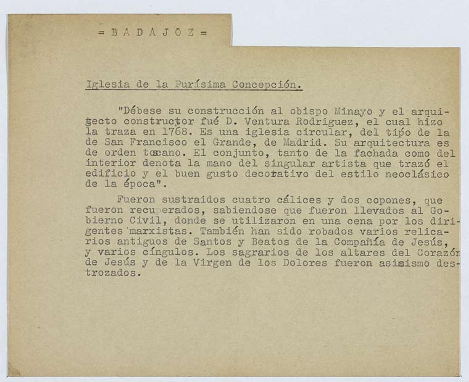 Daños sufridos por la Iglesia de la Purísima Concepción (Badajoz)