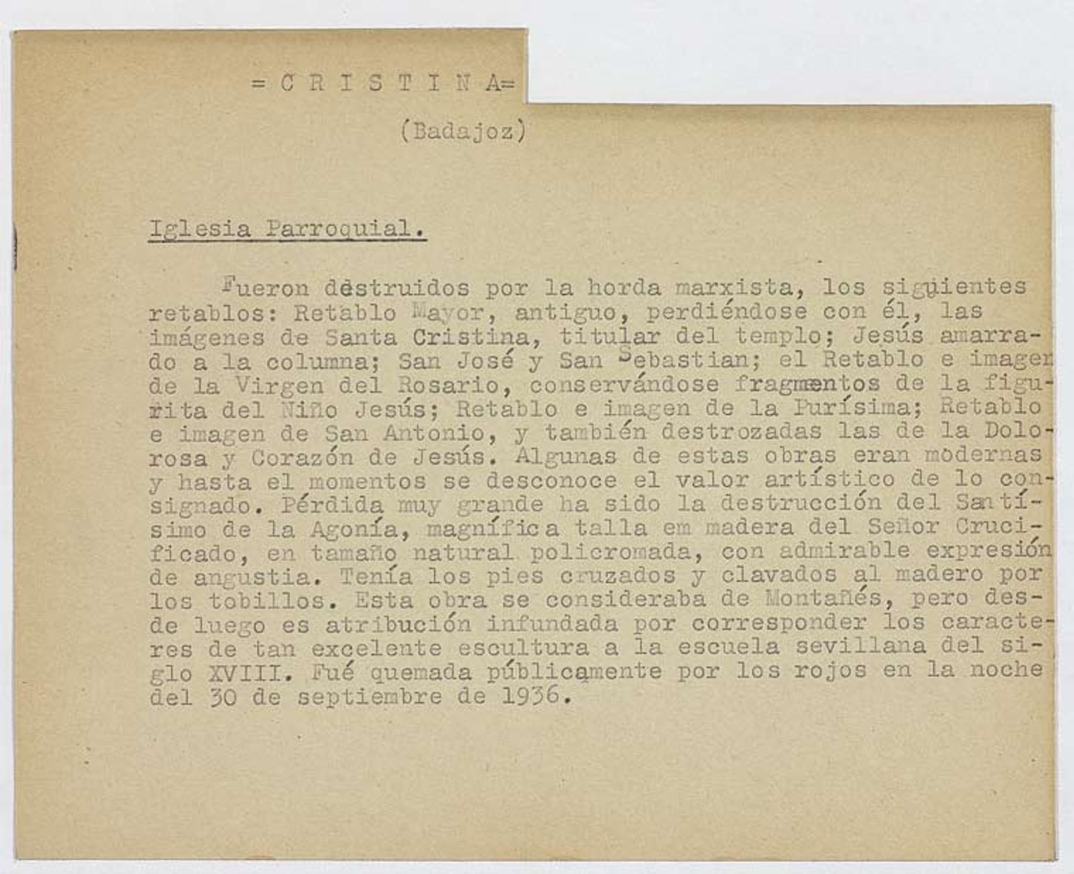 Daños sufridos por la Iglesia Parroquial (Cristina, Badajoz)