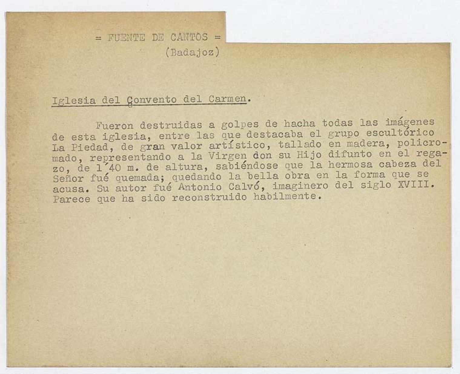 Daños sufridos por la Iglesia del Convento del Carmen (Fuente de Cantos, Badajoz)