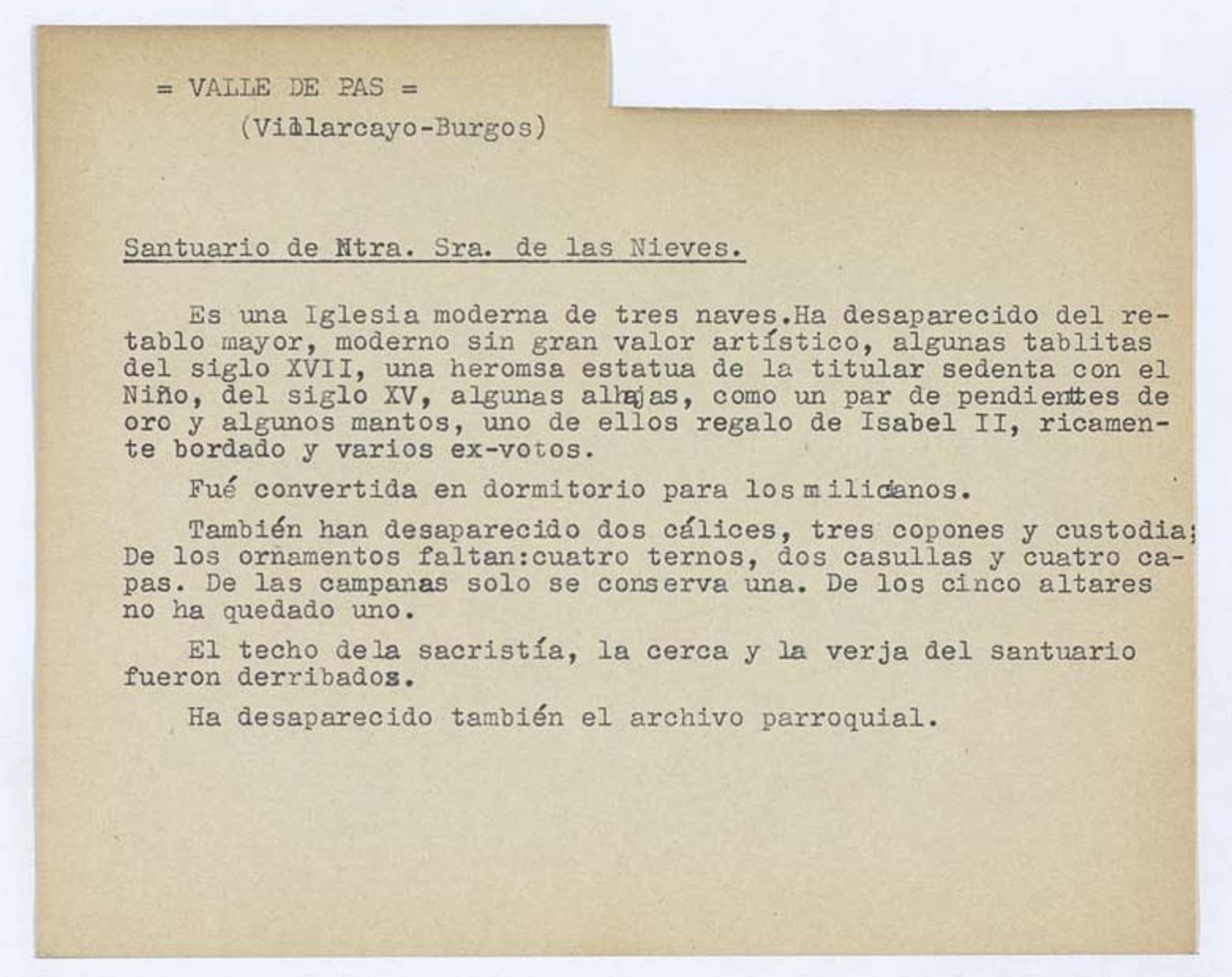 Daños sufridos por el Santuario de Nuestra Señora de las Nieves (Valle de Pas - Villarcayo, Burgos)