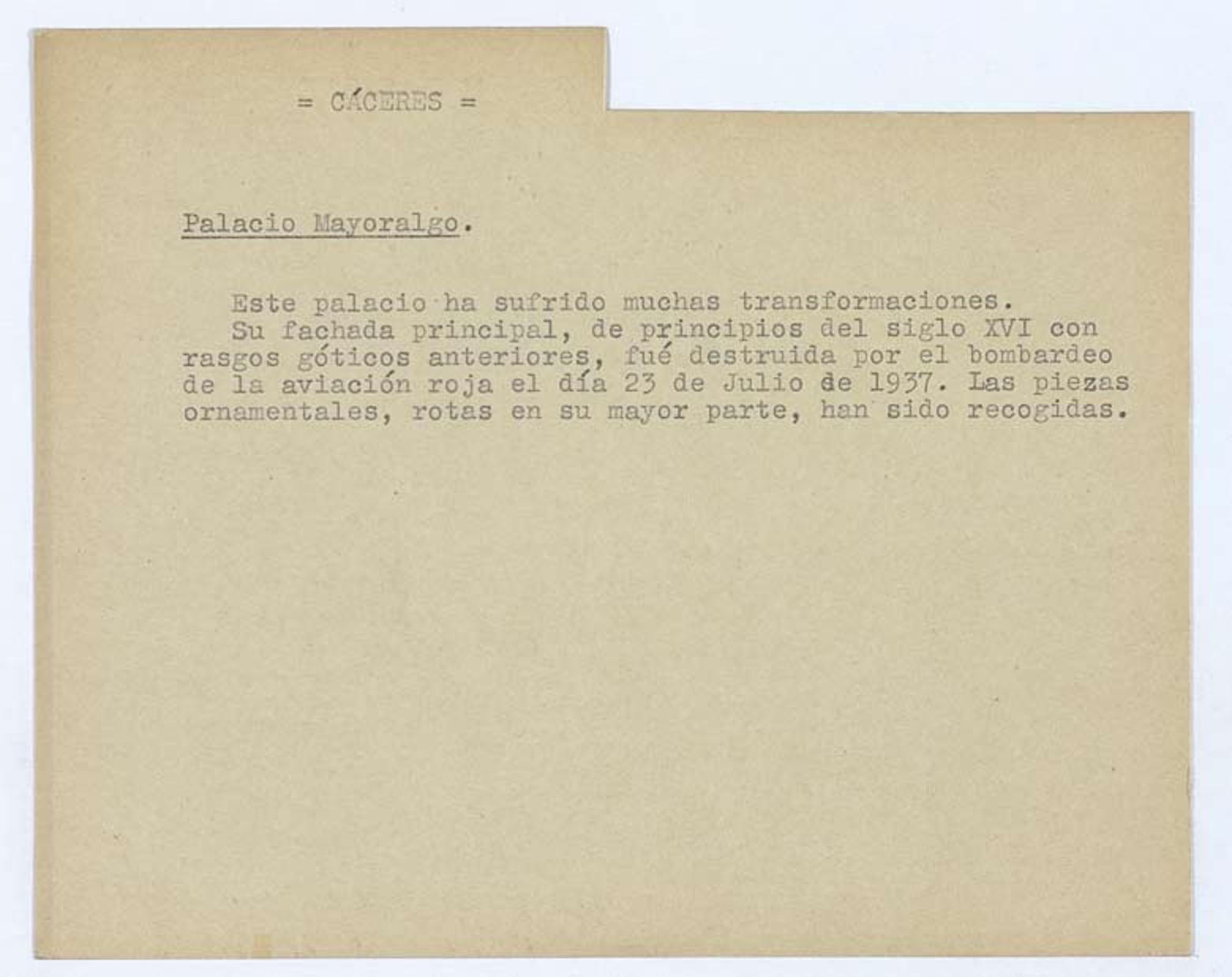 Daños sufridos por el Palacio Mayoralgo (Cáceres)