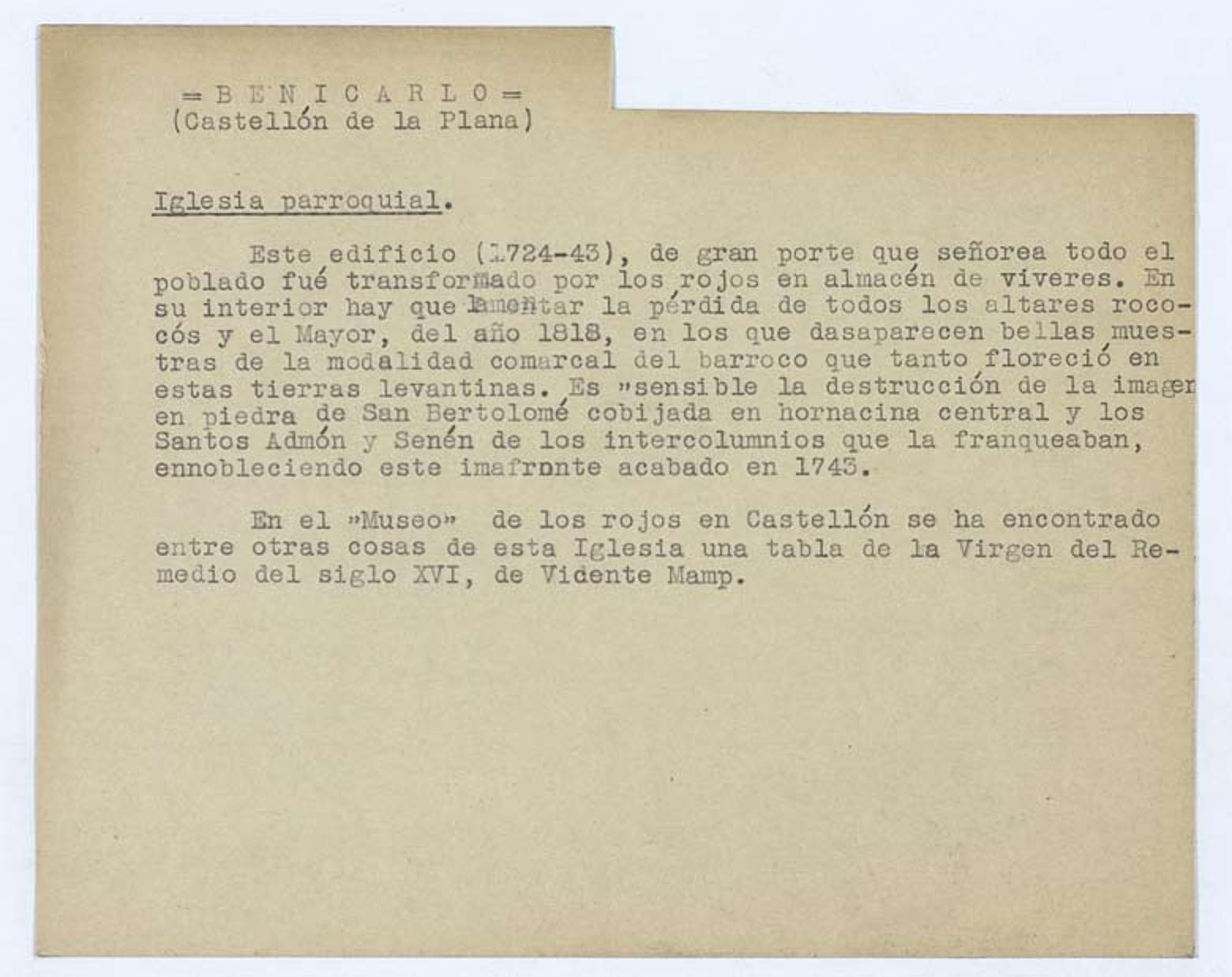Daños sufridos por la iglesia parroquial (Benicarló - Castellón de la Plana, Castellón)