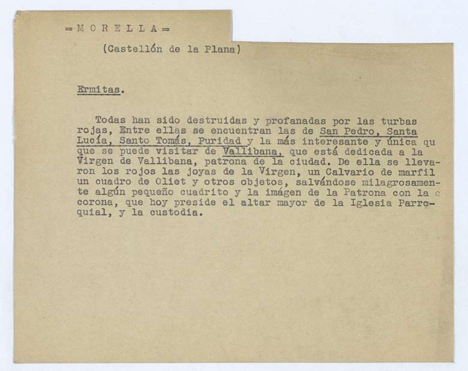Daños sufridos por las ermitas (Morella - Castellón de la Plana, Castellón)