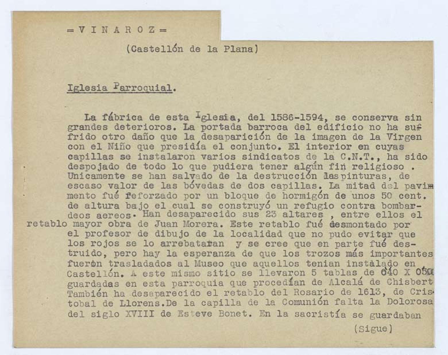 Daños sufridos por la iglesia parroquial (Vinaroz - Castellón de la Plana, Castellón)