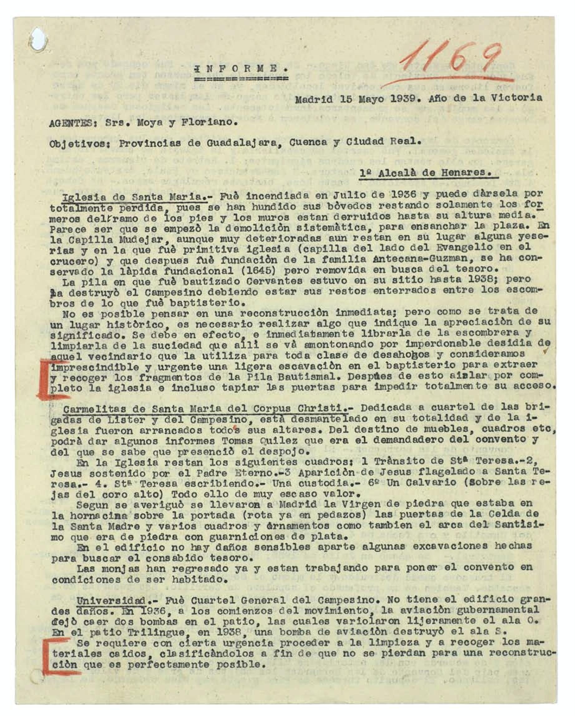 Informes de los agentes del Servicio de Recuperación Artística sobre los daños sufridos por el patrimonio en la provincia de Guadalajara, Cuenca y Ciudad Real