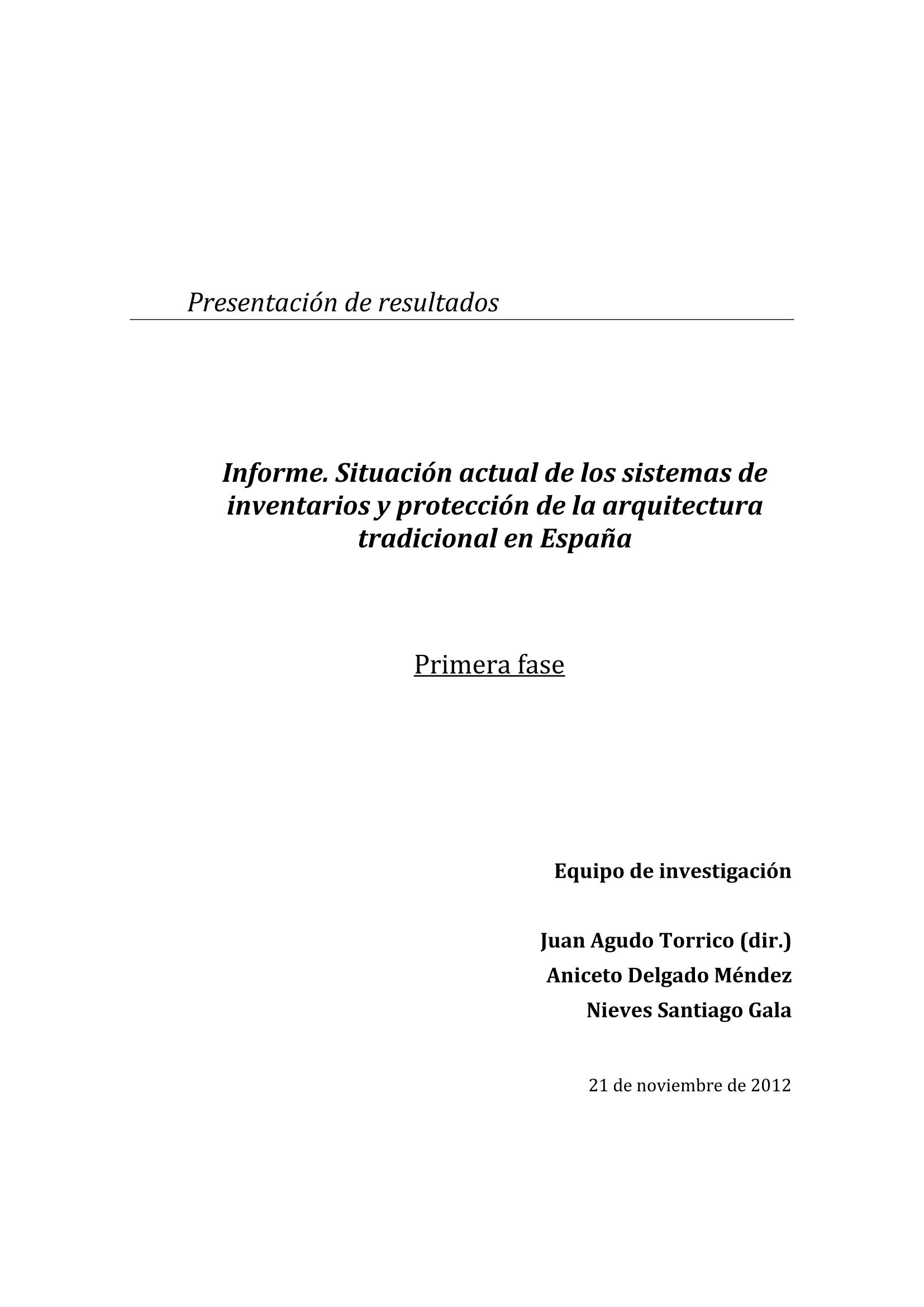 Informe de situación actual de los sistemas de inventarios y protección de la arquitectura tradicional en España