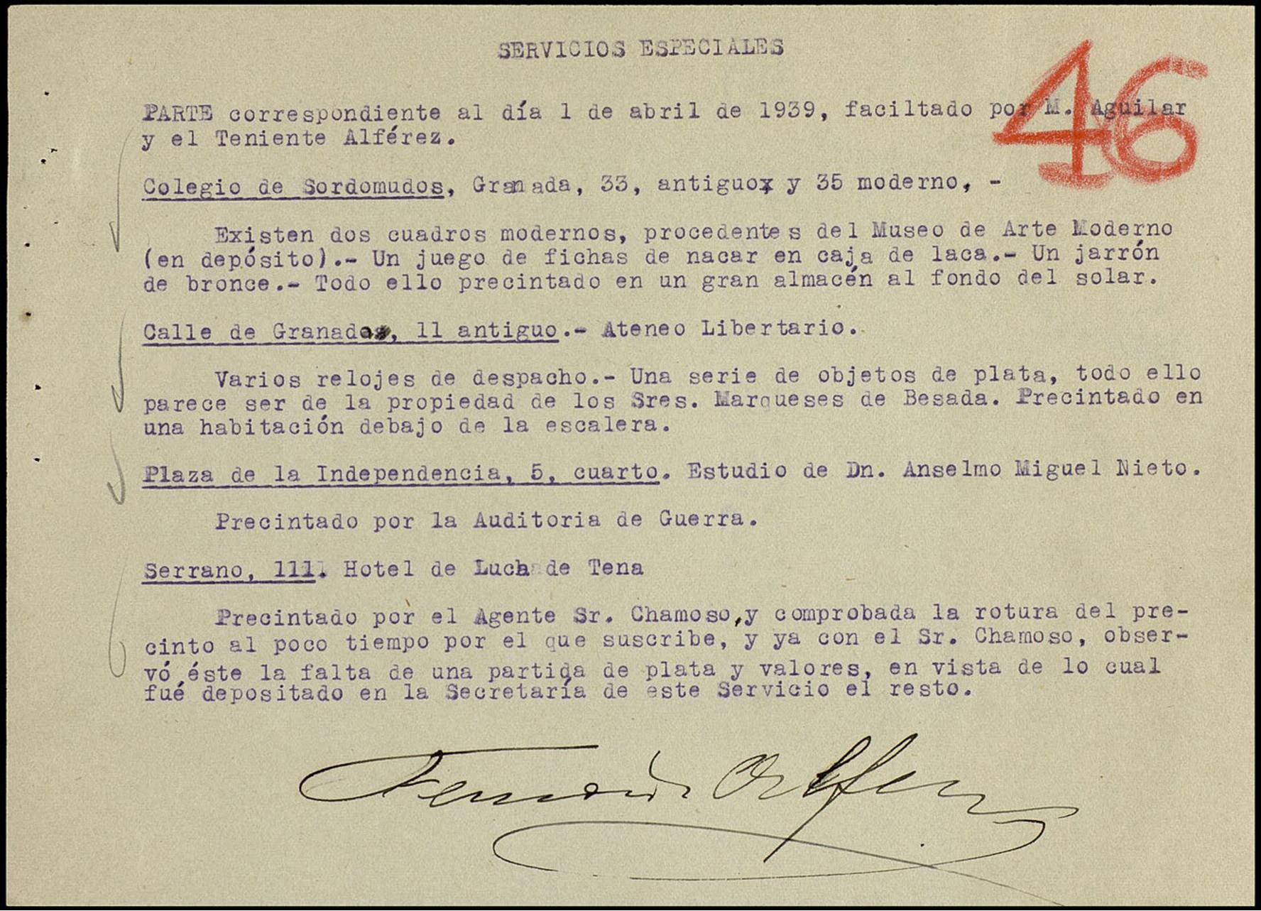 Visitas realizadas por los agentes al Colegio de Sordomudos, a un ateneo libertario y a varias casas