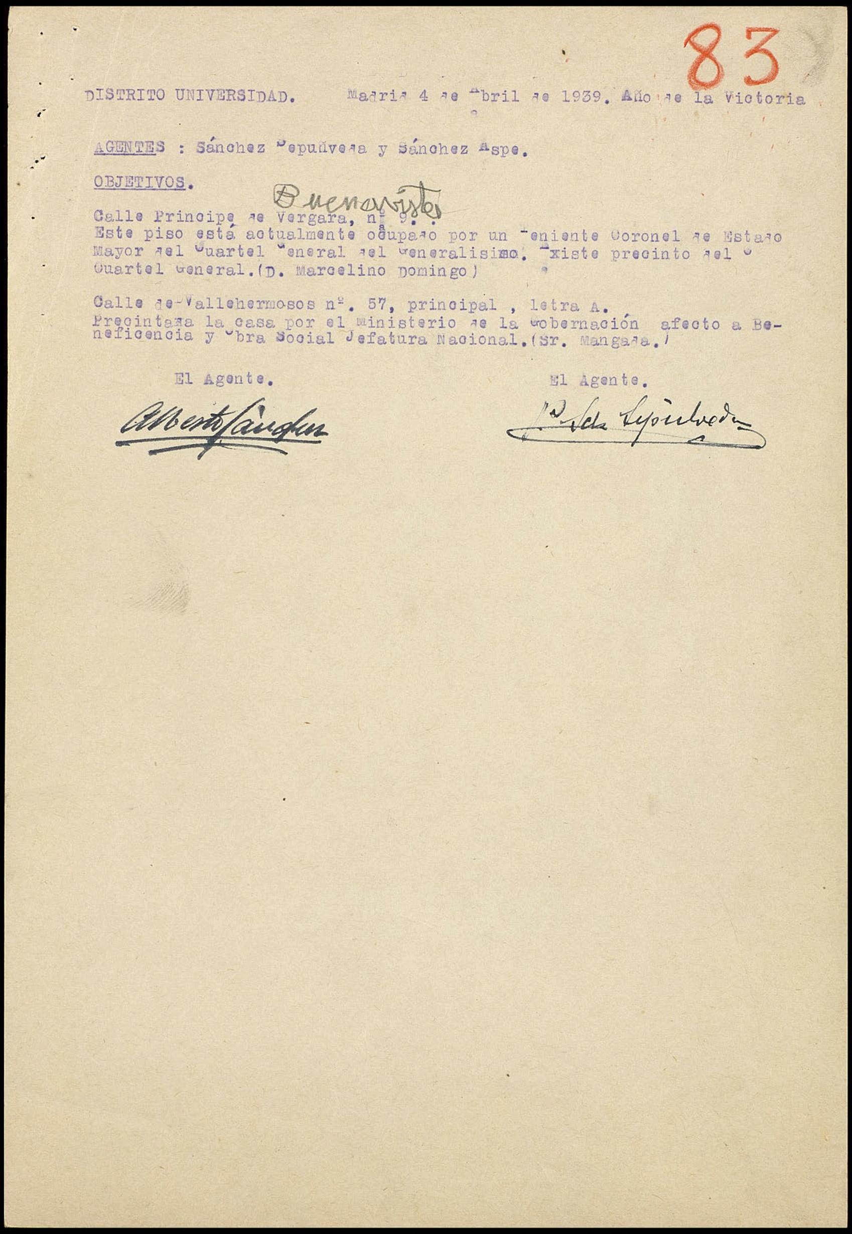 Visitas realizadas por los agentes a dos domicilios particulares de Madrid
