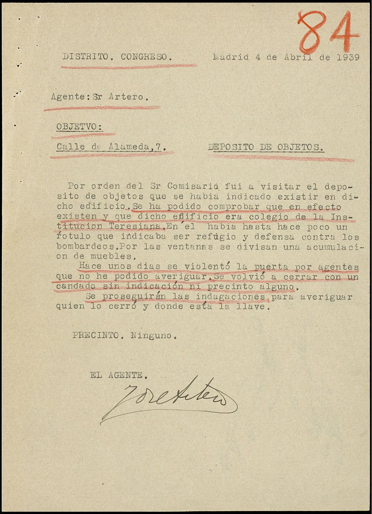 Visitas realizadas por los agentes al deposito de un edificio en la calle Alameda de Madrid