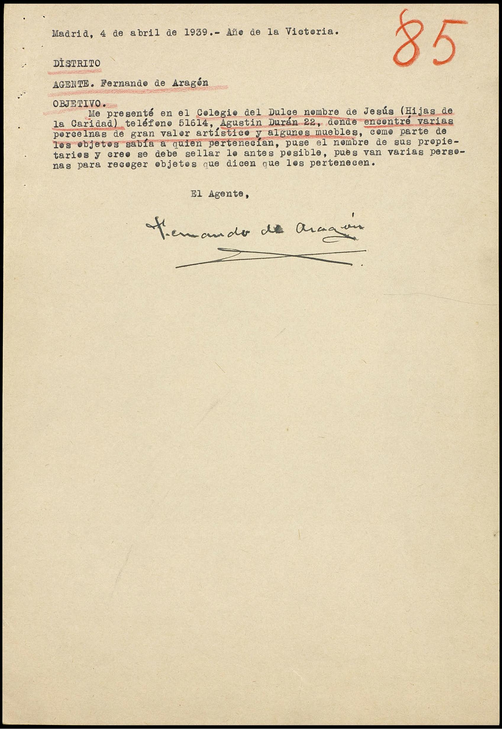 Visitas realizadas por los agentes al Colegio del Dulce Nombre de Jesús de las Hijas de la Caridad en Madrid