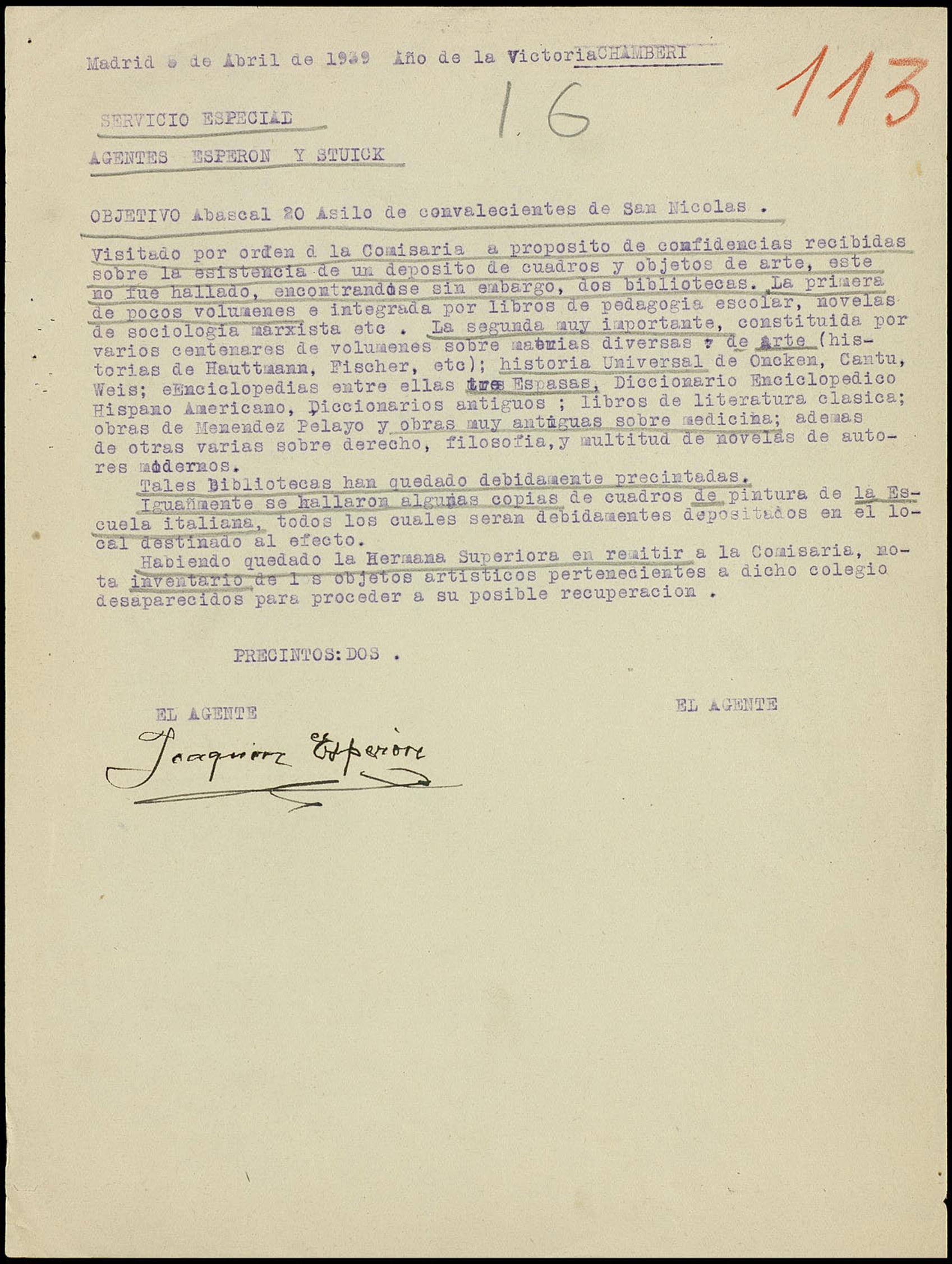 Visitas realizadas por los agentes al Asilo de Convalecientes de San Nicolás de Madrid