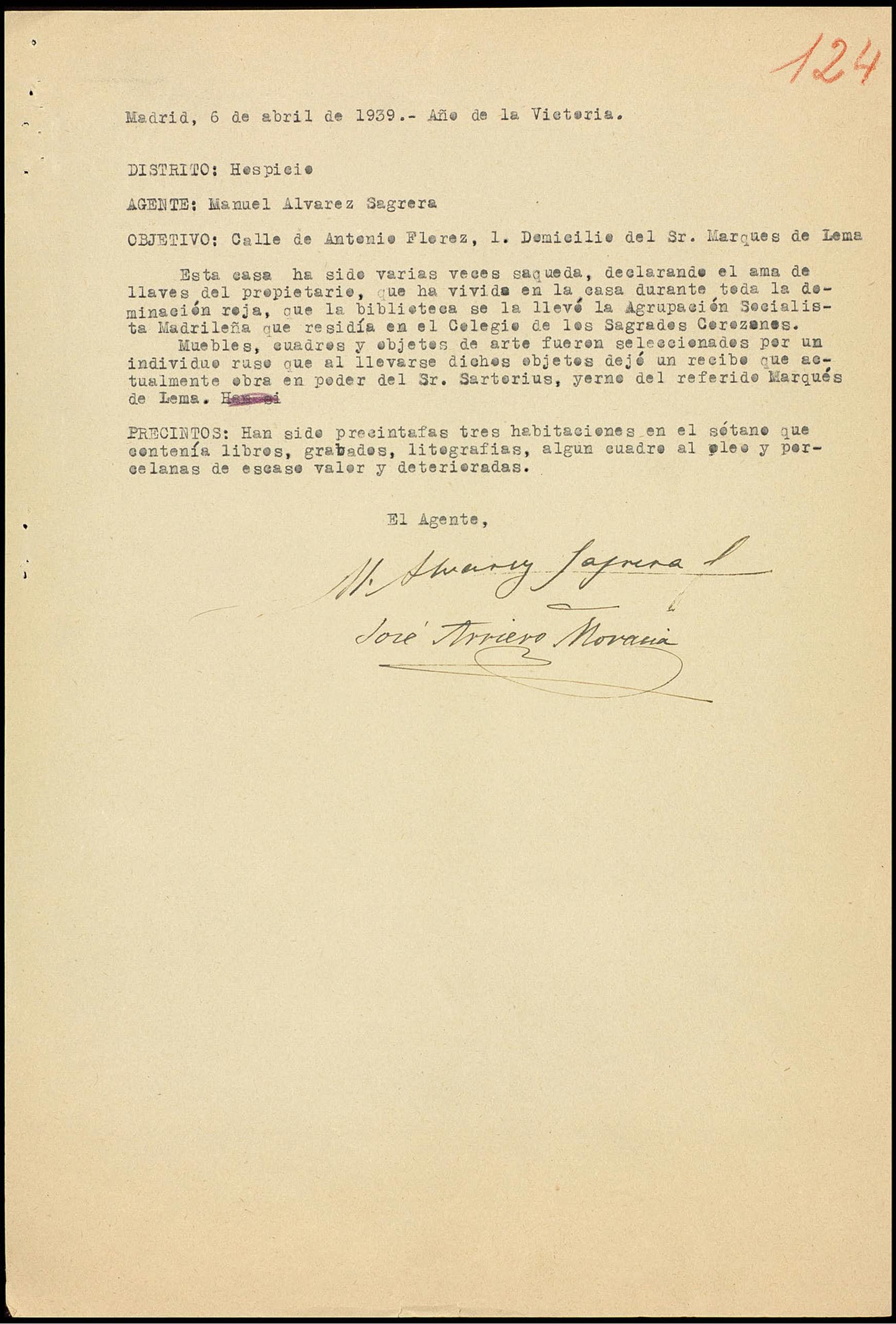 Visitas realizadas por los agentes al domicilio del Marqués de Lema