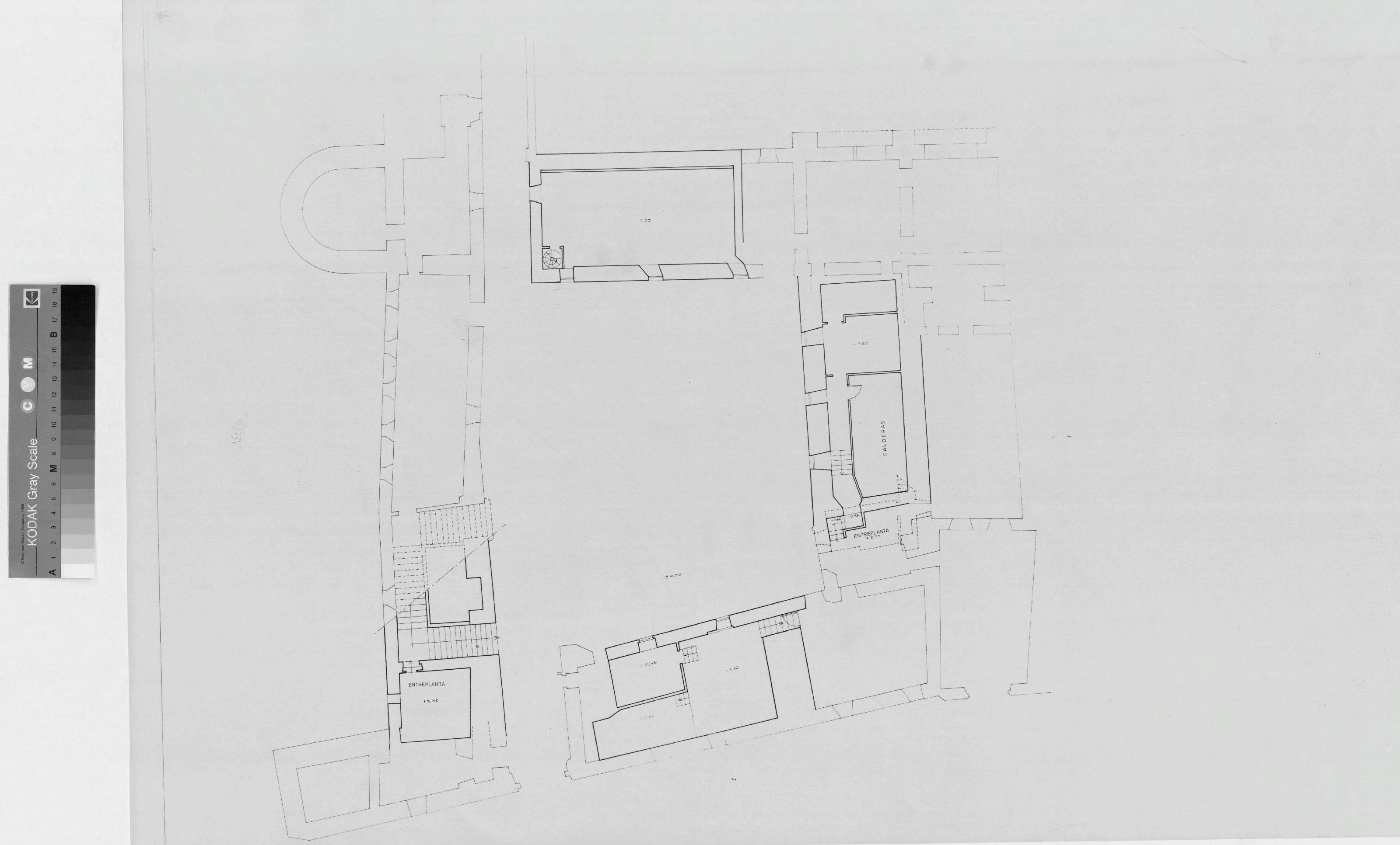 MUSEO PROVINCIAL DE LEON - PROYECTO DE EJECUCION DE OBRAS DE RESTAURACION Y ACONDICIONAMIENTO: PLANTA Sobre un fragmento de planta regruesa zonas correspondientes a diferentes entreplantas marcando cotas y alguna denominación de uso. Sin recuadro ni sello y sin firmar.