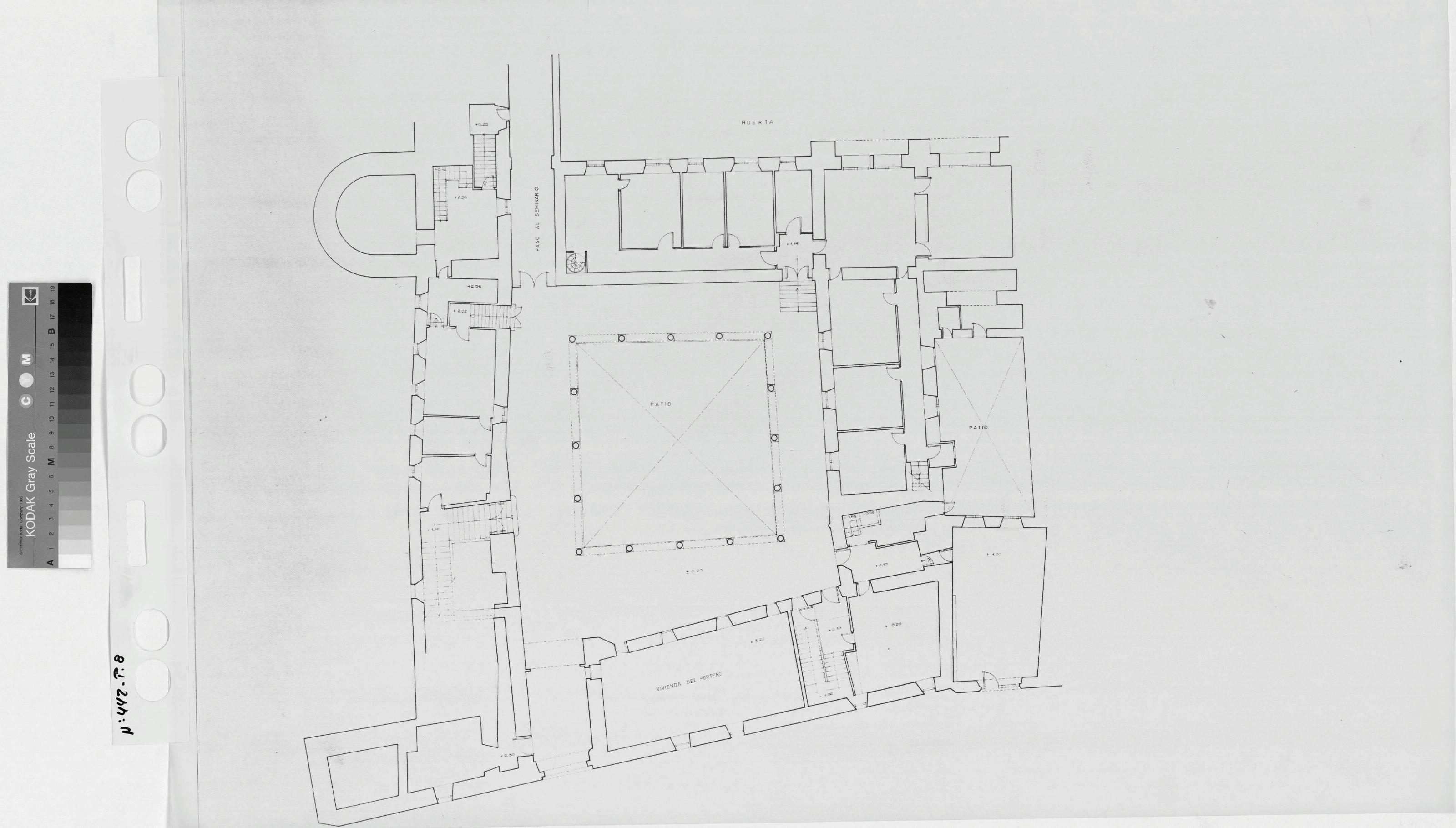 MUSEO PROVINCIAL DE LEON - PROYECTO DE EJECUCION DE OBRAS DE RESTAURACION Y ACONDICIONAMIENTO: PLANTA Un fragmento de planta marcando cotas de altura y alguna denominación de uso, con comunicaciones verticales de escaleras. Sin recuadro ni sello y sin firmar.