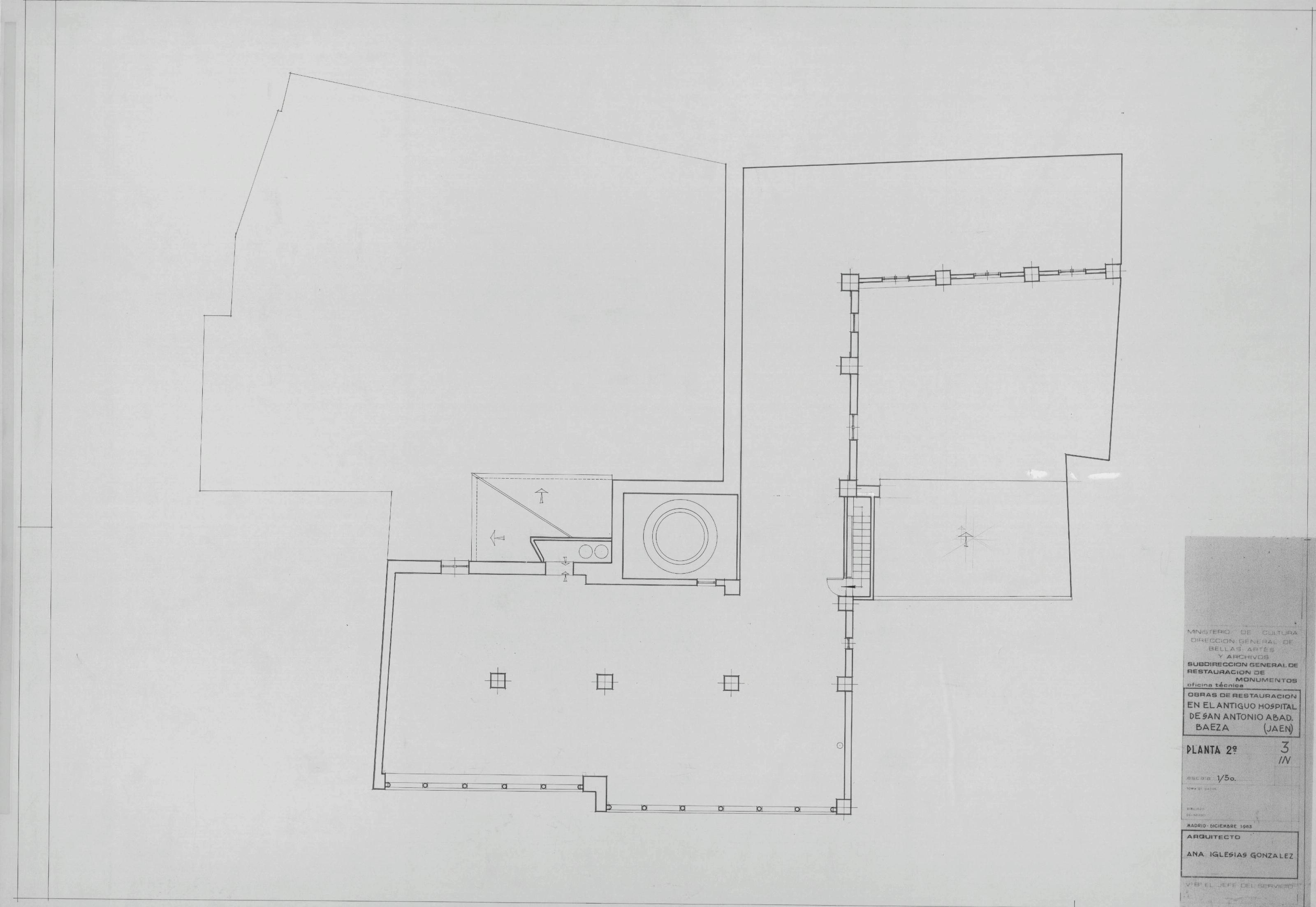 HOSPITAL DE SAN ANTONIO ABAD. BAEZA.: PLANTA SEGUNDA, señala todo el perimetro de los muros de la planta, del antiguo hospital, plano sin cotas.