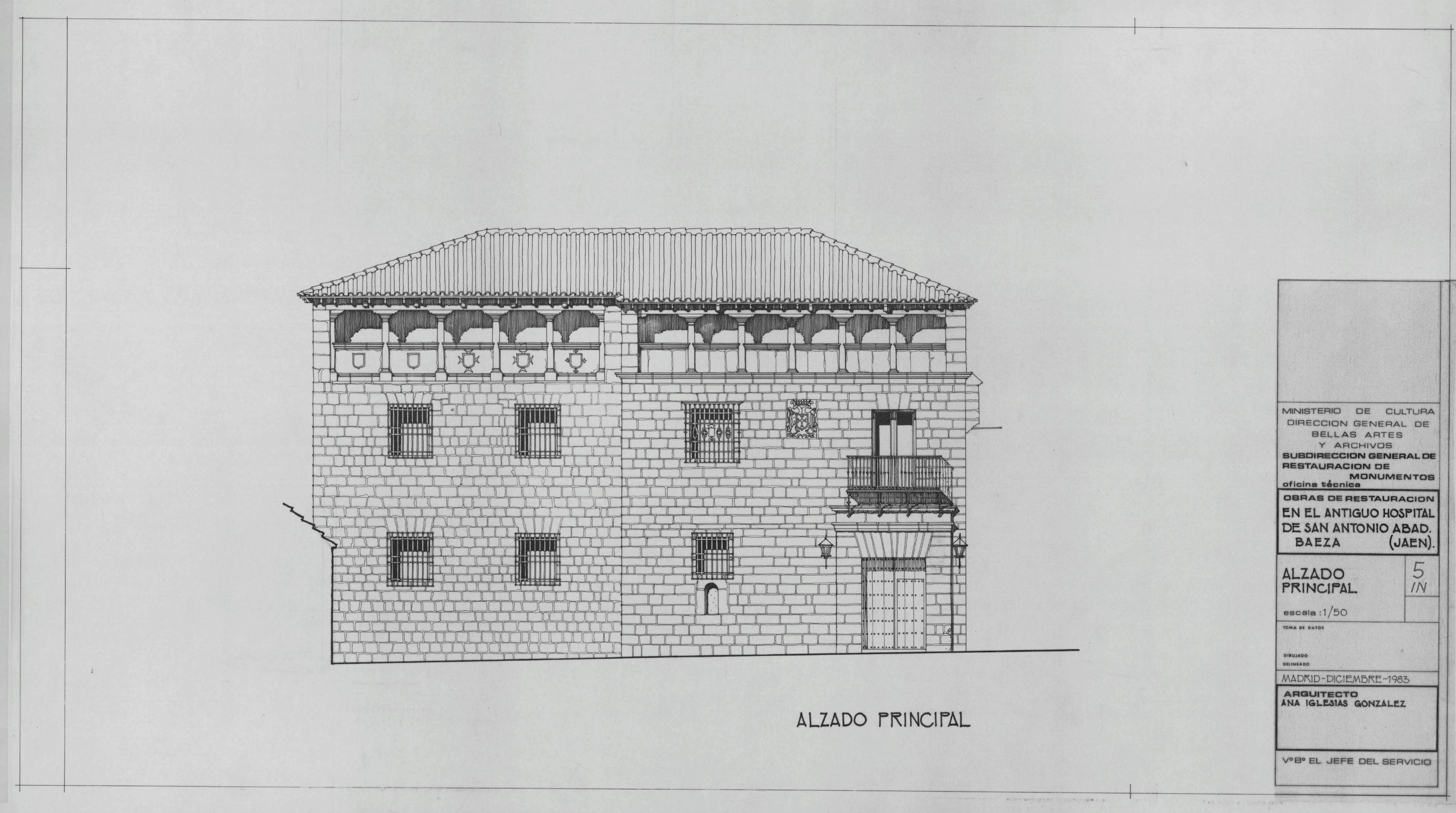 HOSPITAL DE SAN ANTONIO ABAD. BAEZA.: ALZADO PRINCIPAL plano dibujado con detalle, plano sin cotas.