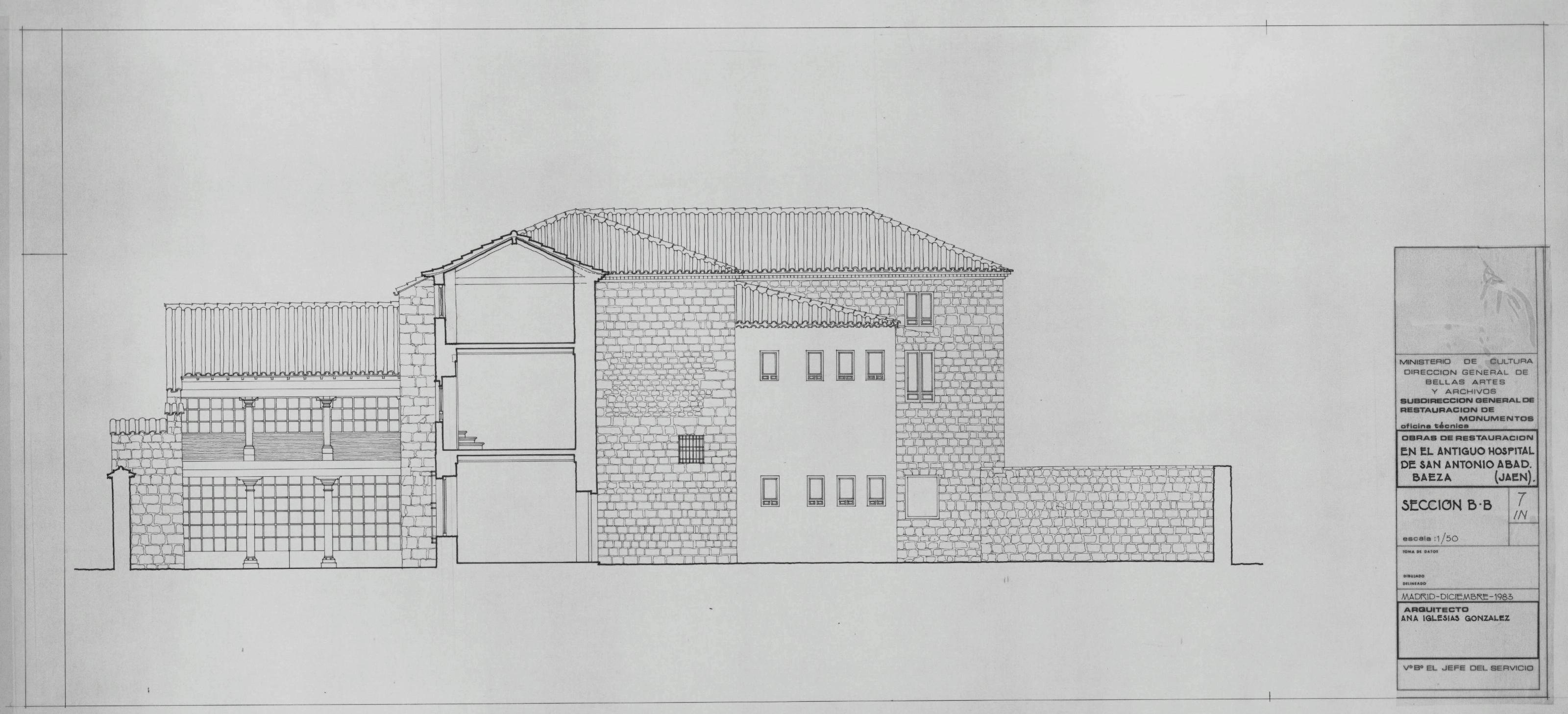HOSPITAL DE SAN ANTONIO ABAD. BAEZA.: SECCION B-B. plano dibujado con detalle, plano sin cotas.