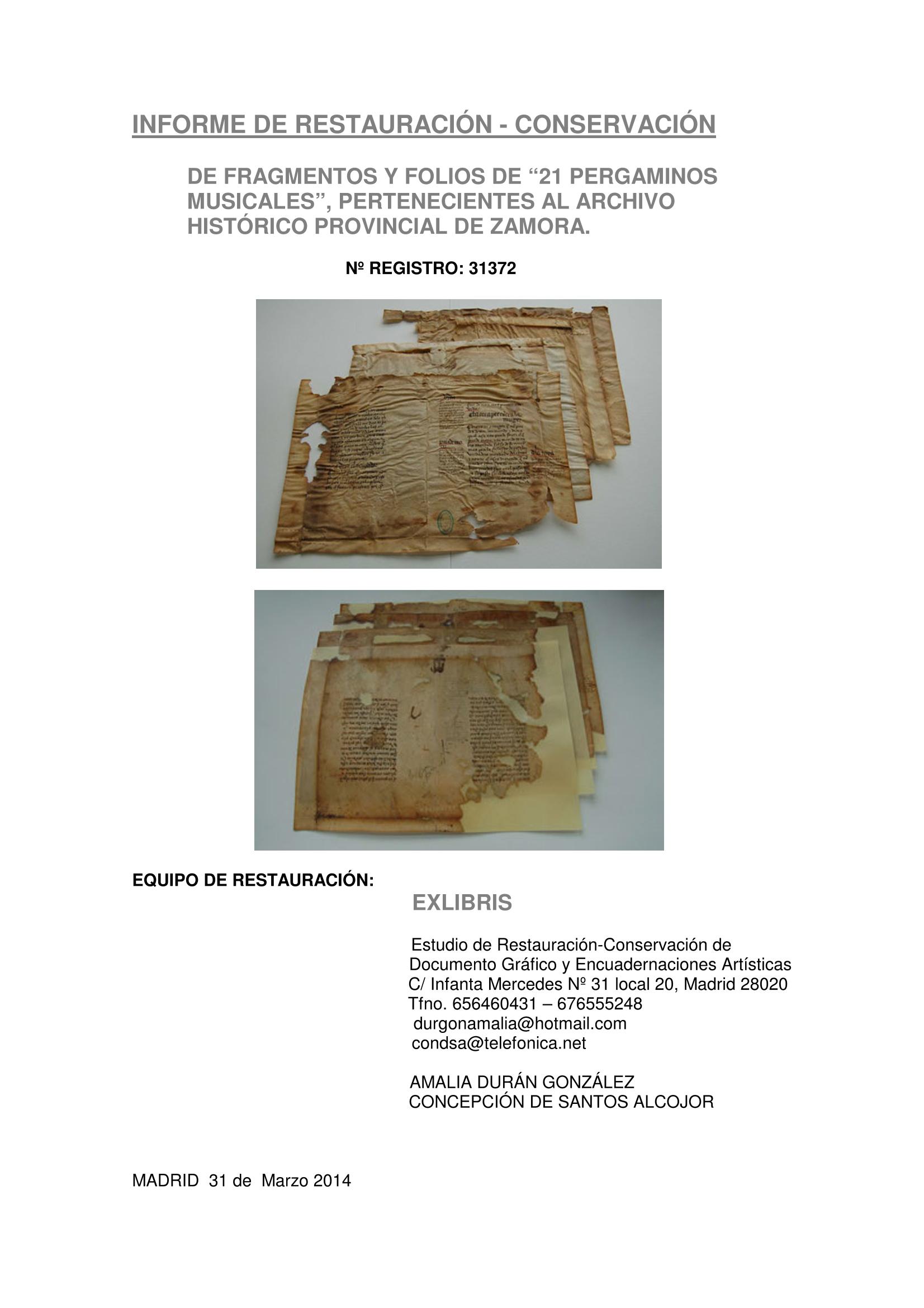 Restauración de veintiún pergaminos musicales pertenecientes al Archivo Histórico Provincial de Zamora