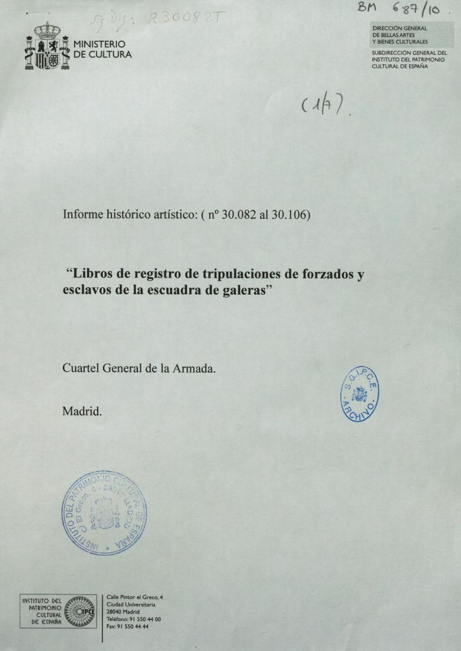 Restauración de libros de registro de tripulaciones de forzados y esclavos de la escuadra de galeras, procedentes del Museo Naval y del Cuartel General de la Armada