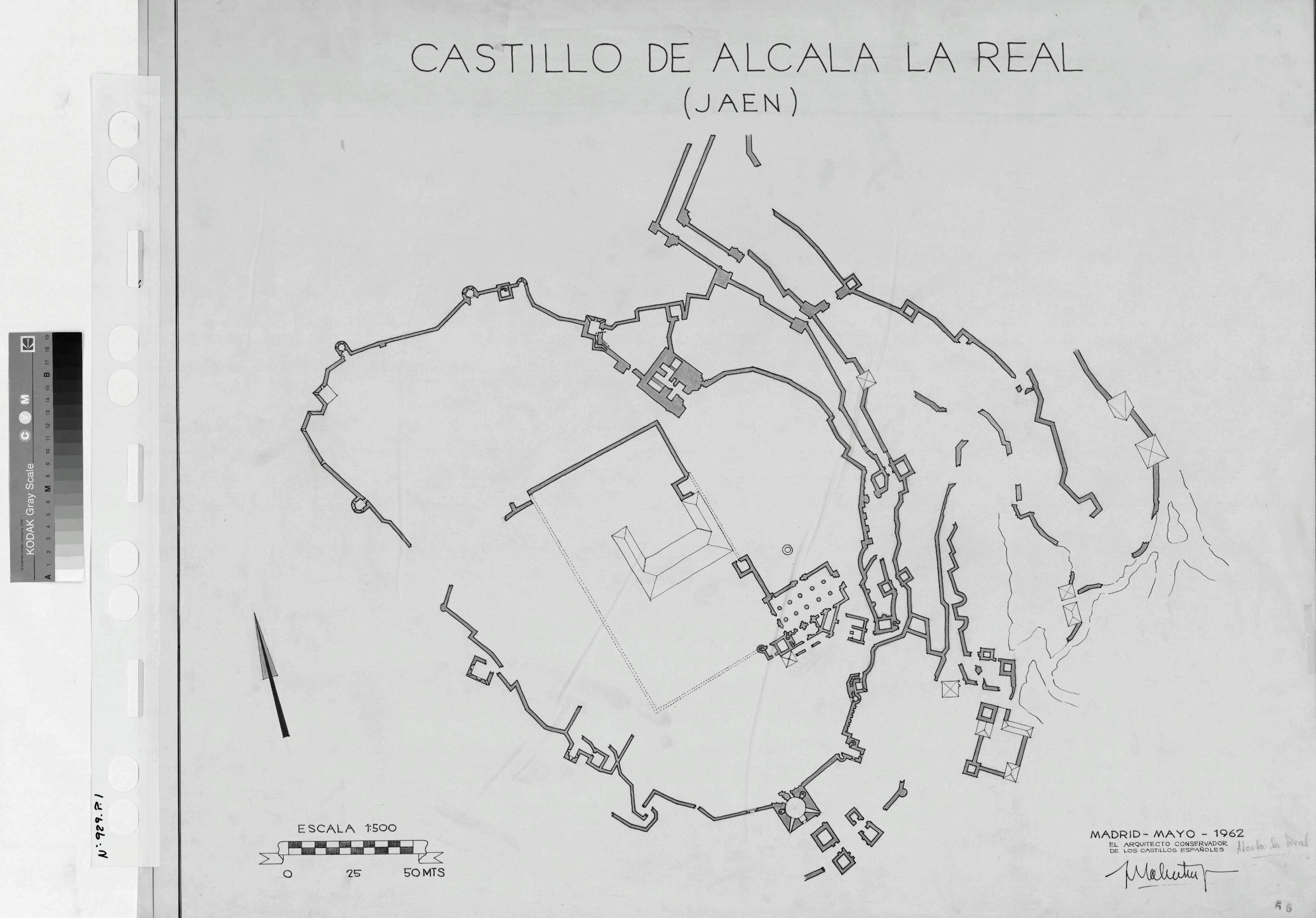 CASTILLO DE ALCALA LA REAL JAEN.: PLANTA GENERAL, Plano general del castillo , muros regruesados. Plano sin cotas.