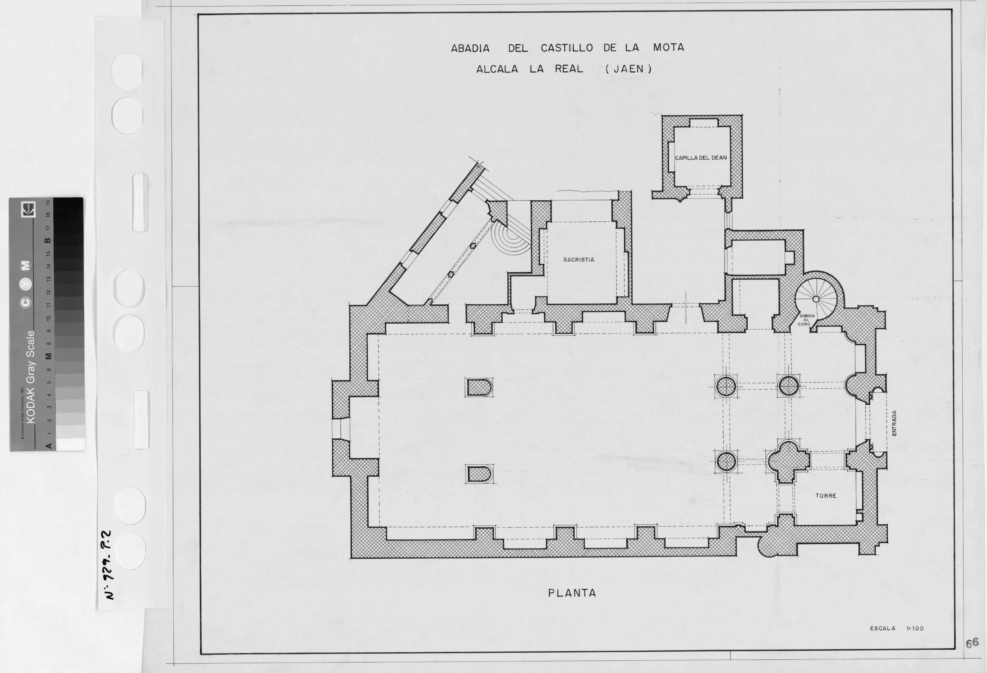 ABADIA DEL CASTILLO DE LA MOTA . DE ALCALA LA REAL JAEN.: PLANTA GENERAL, Plano general de la iglesia, Plano sin cotas.