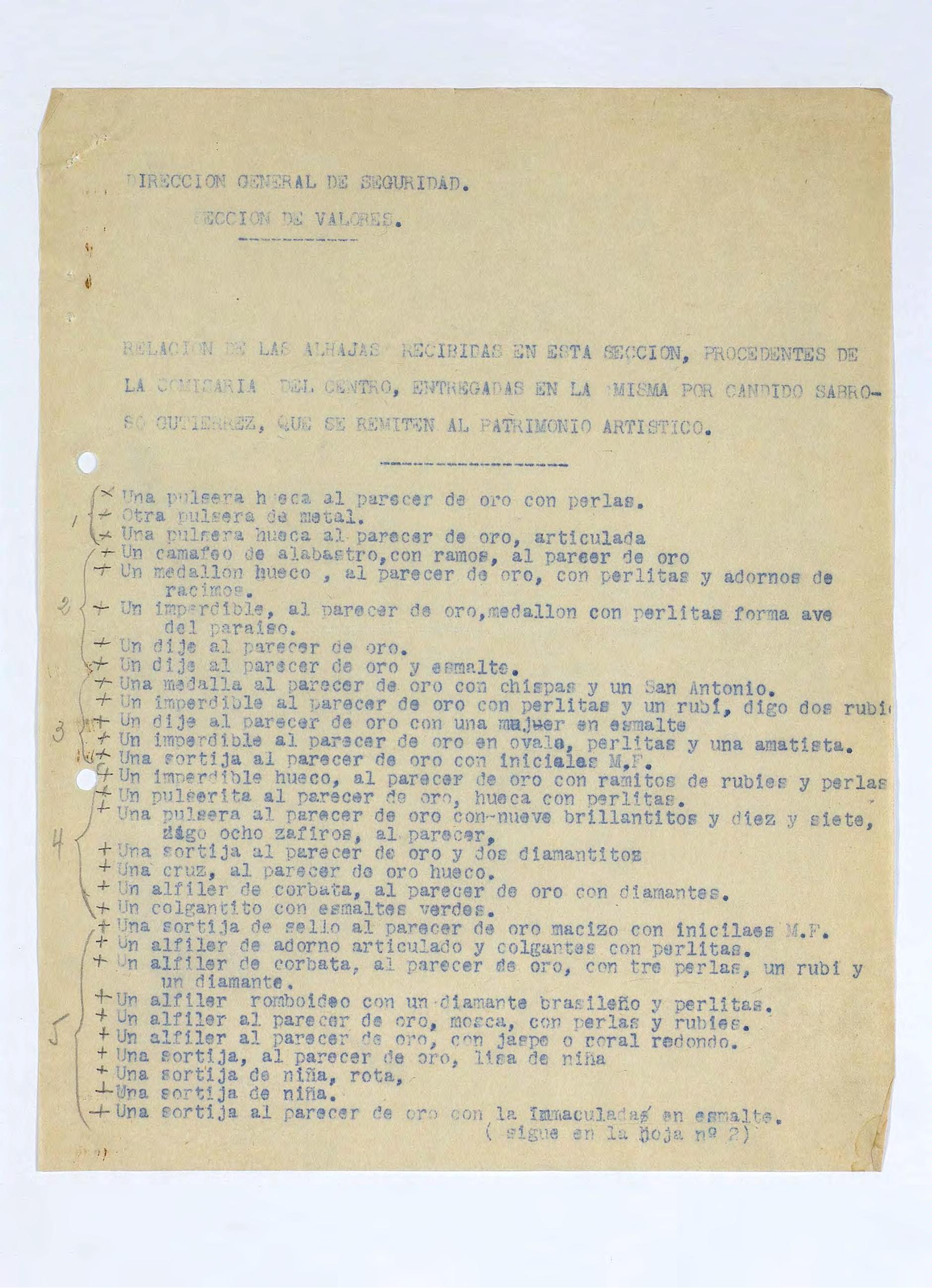 Expediente de entrega de objetos en depósito a la Comisaría General del SDPAN