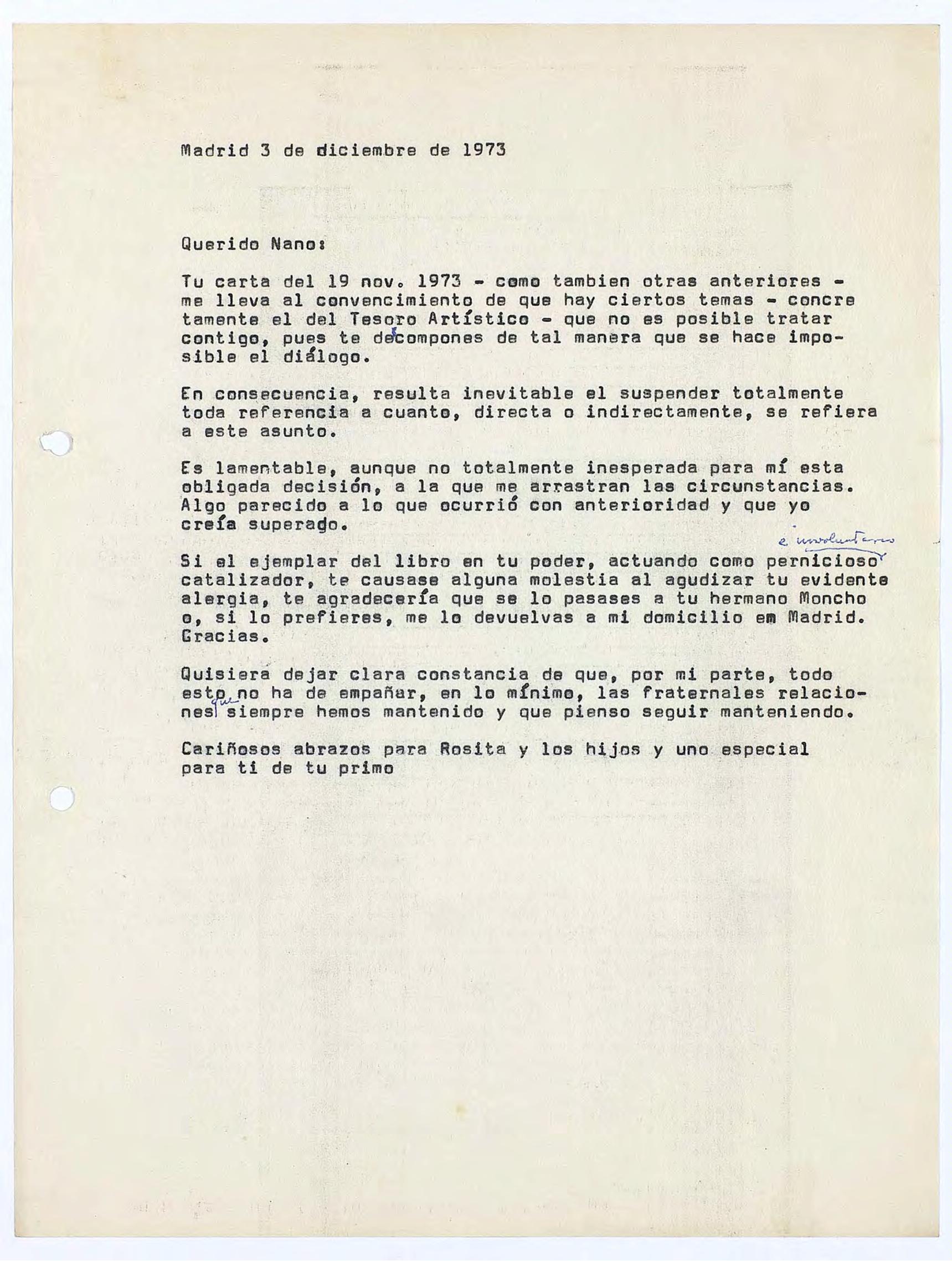 Copia de carta mecanografiada dirigida por José Lino Vaamonde [aunque no aparece su firma ni su nombre] a Nano.