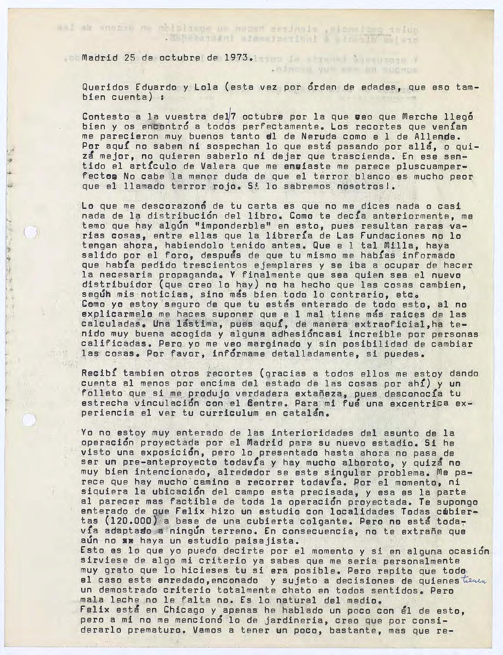 Copia de carta mecanografiada de una hoja dirigida a Eduardo [Robles Piquer] y Lola por José Lino Vaamonde.