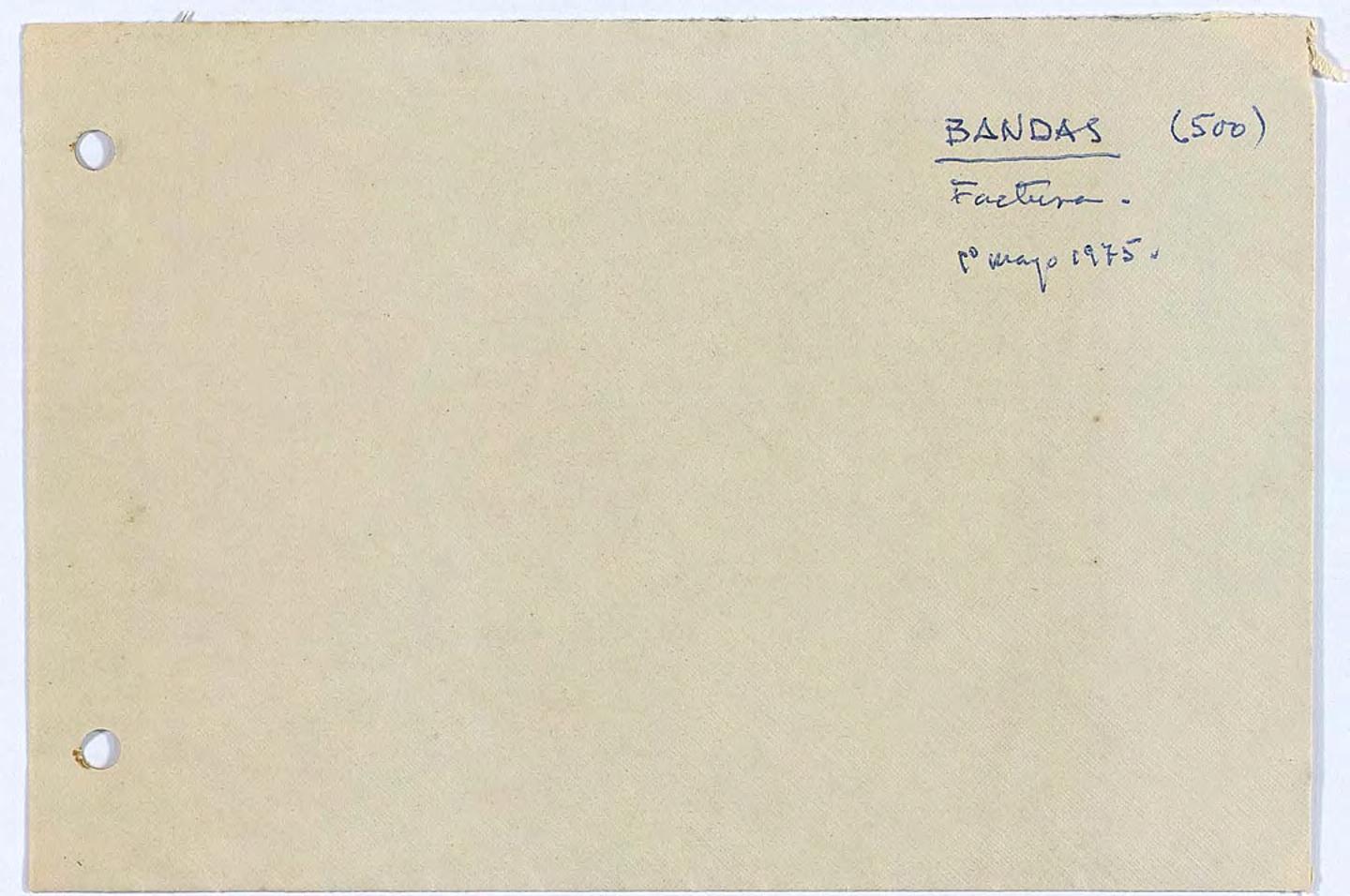 Sobre con factura de las 500 bandas de papel para libros impreso (2.500 pesetas).