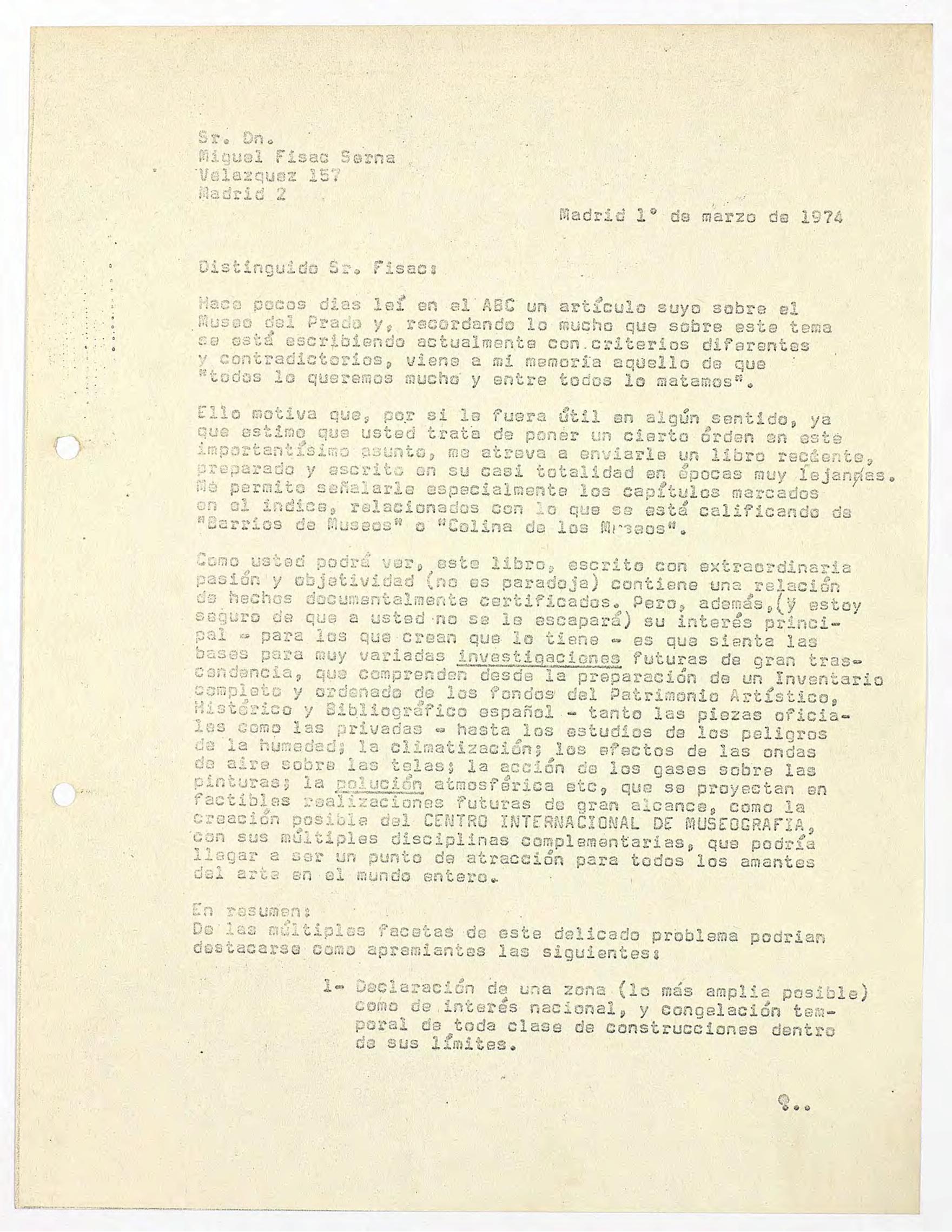 Fotocopia (2 páginas) de la carta mecanografiada dirigida a Miguel Fisac.