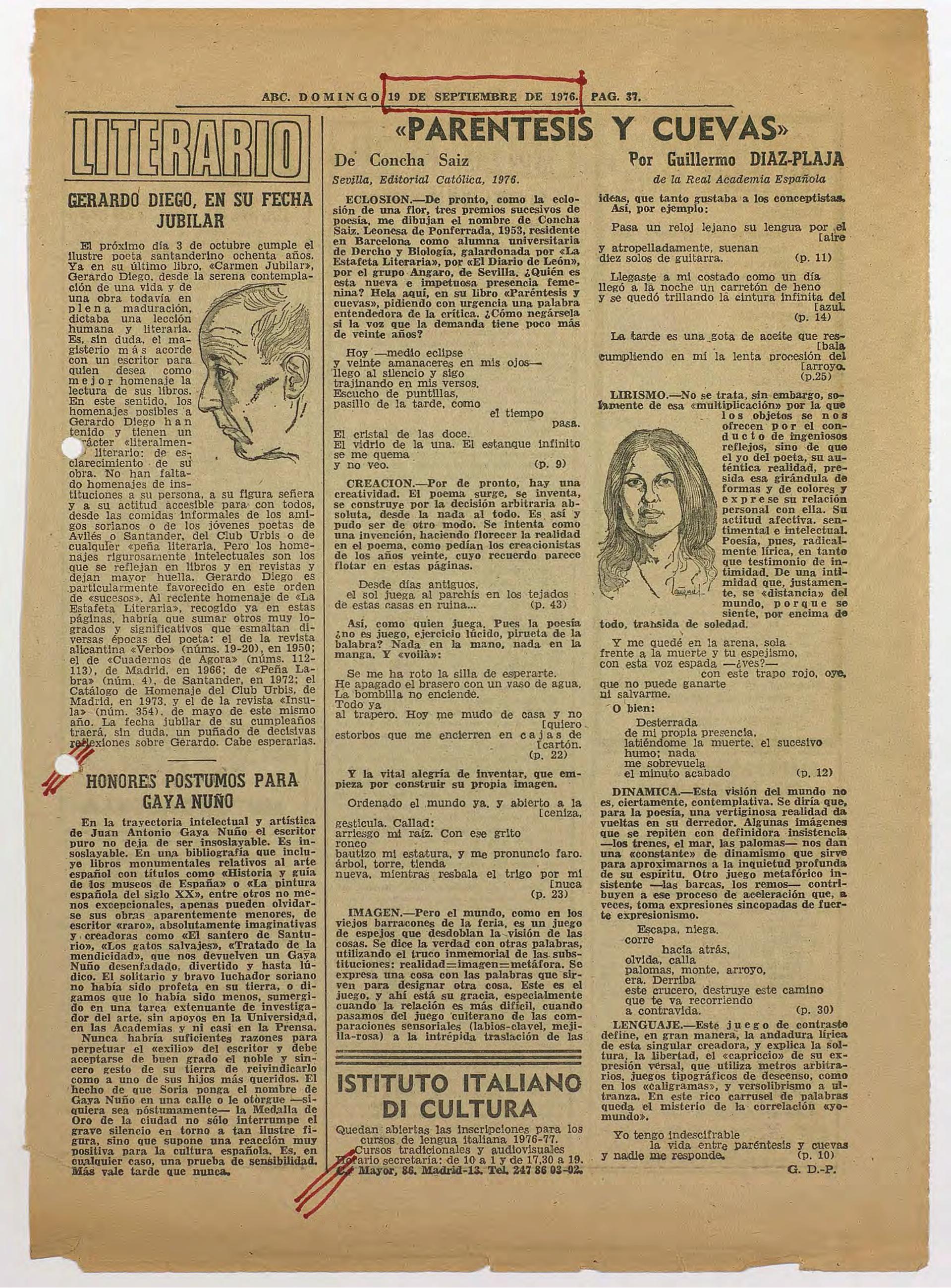 Artículo titulado "Honores póstumos para Gaya Nuño", publicado en el Diario ABC.