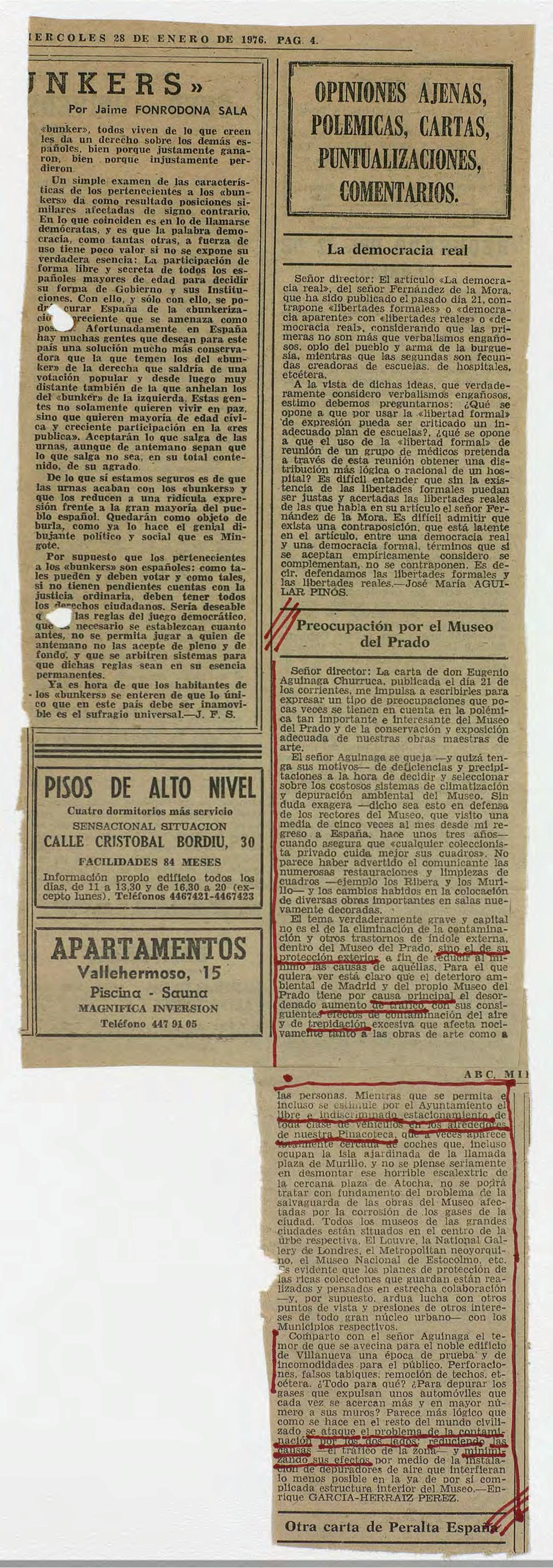 Carta al director de Enrique García-Herraiz Pérez titulada "Preocupación por el Museo del Prado", publicada en el Diario ABC.