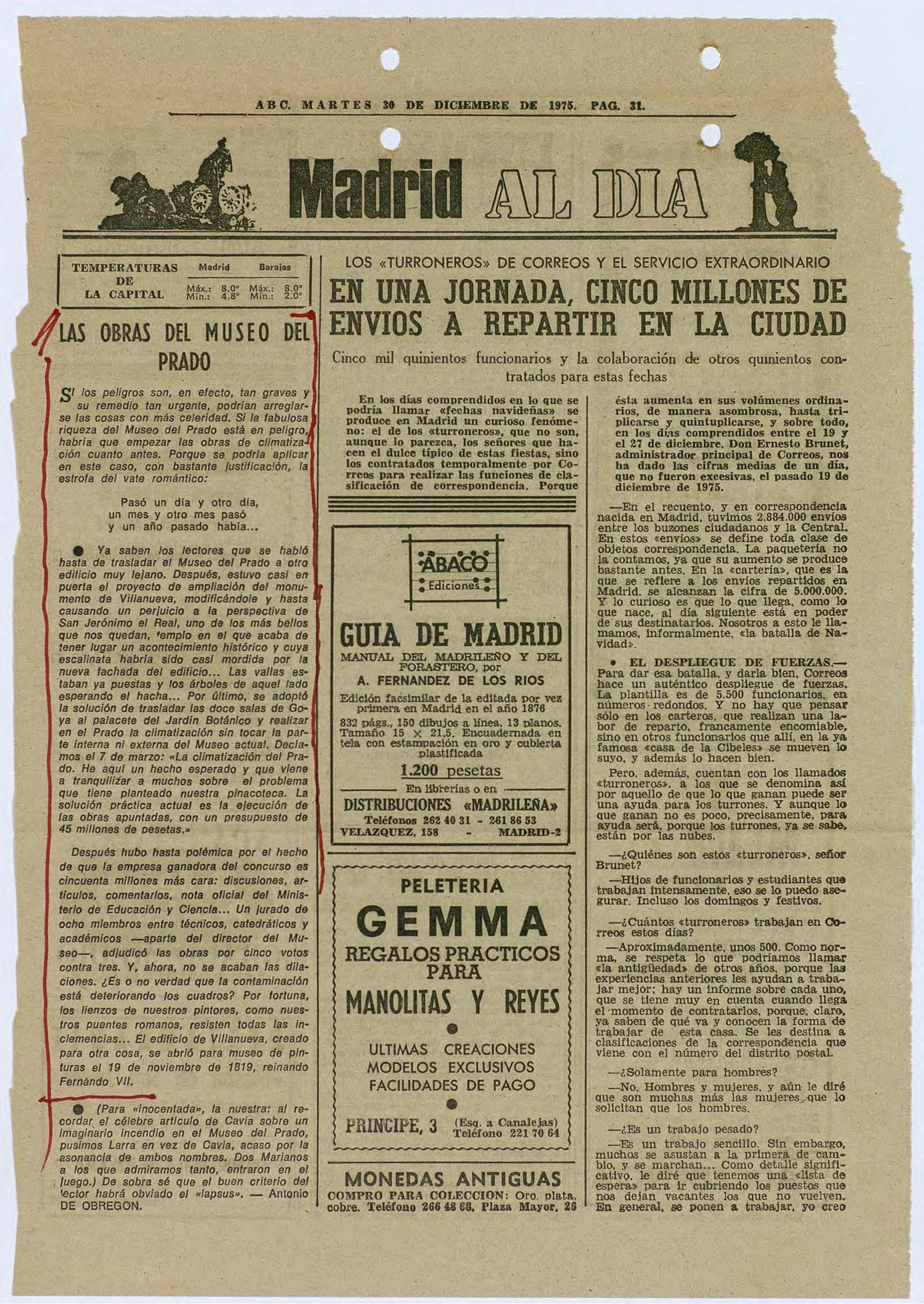 Artículo de Antonio de Obregón titulado "Las obras del Museo del Prado", publicado en el diario ABC.