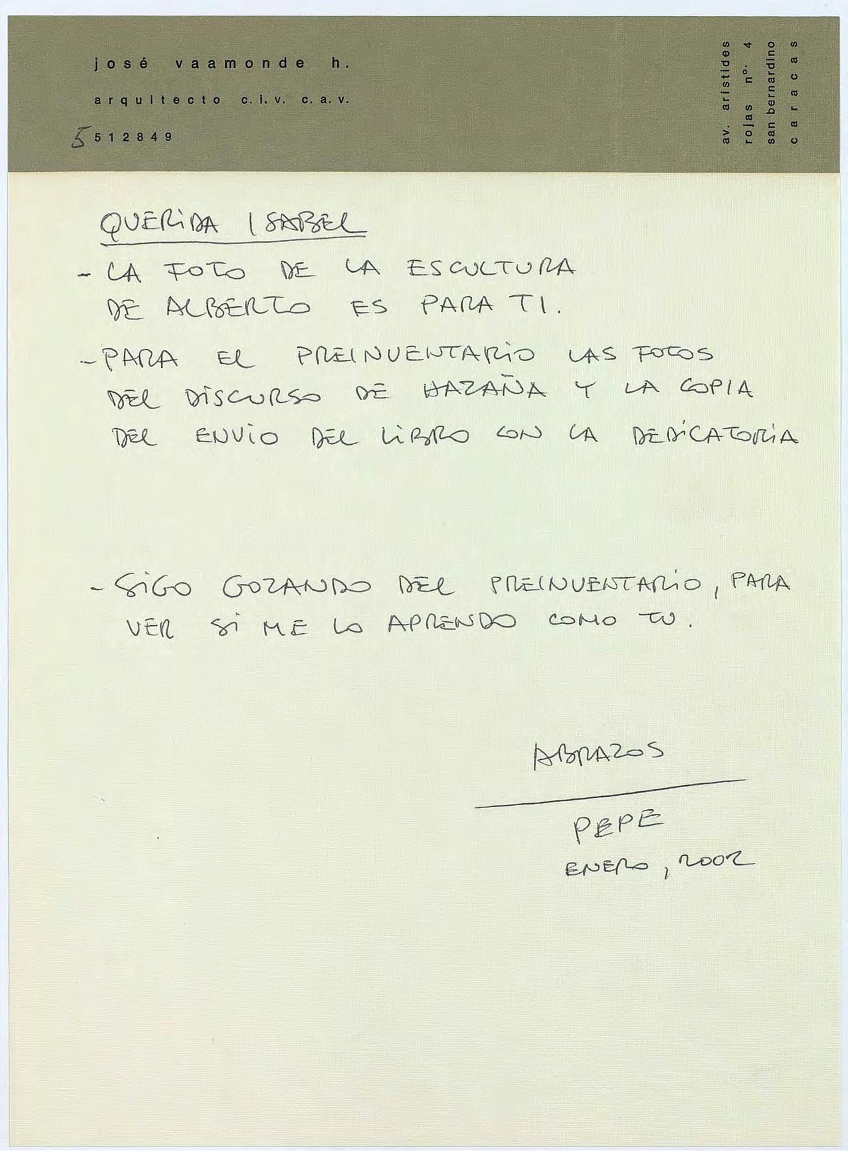 Carta manuscrita de D. Joselino Vaamonde H. dirigida a Isabel Argerich.