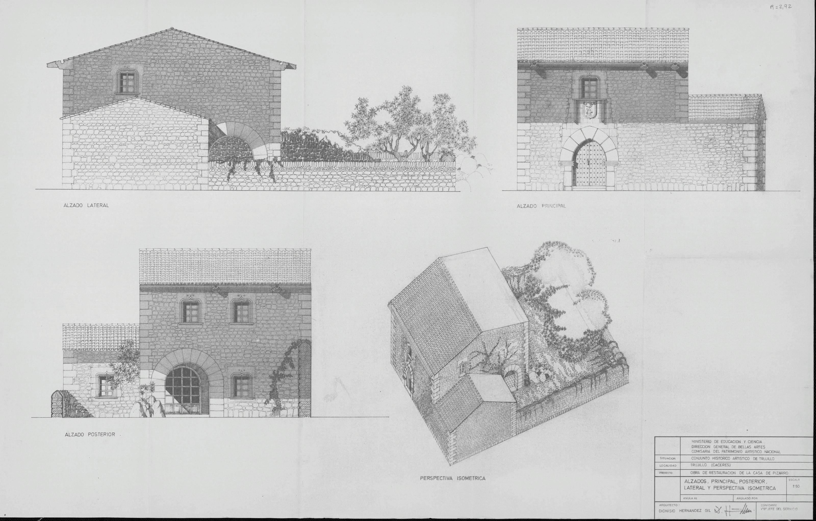 Casa de Pizarro -Trujillo- (Caceres): Alzado Lateral Alzado Principal Alzadob Posterior Perspectiva Isometrica