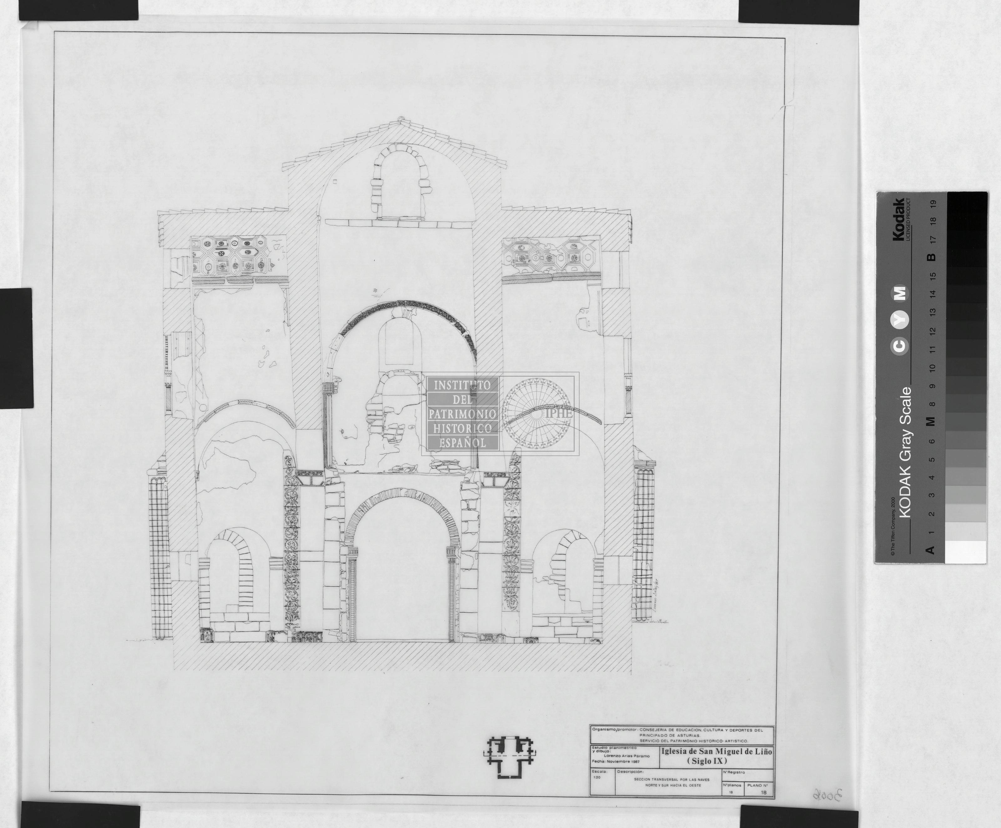 IGLESIA DE SAN MIGUEL DE LIÑO: SECCION TRANSVERSAL POR LAS NAVES NORTE Y SUR HACIA EL ESTE (PLANO GRANDE)