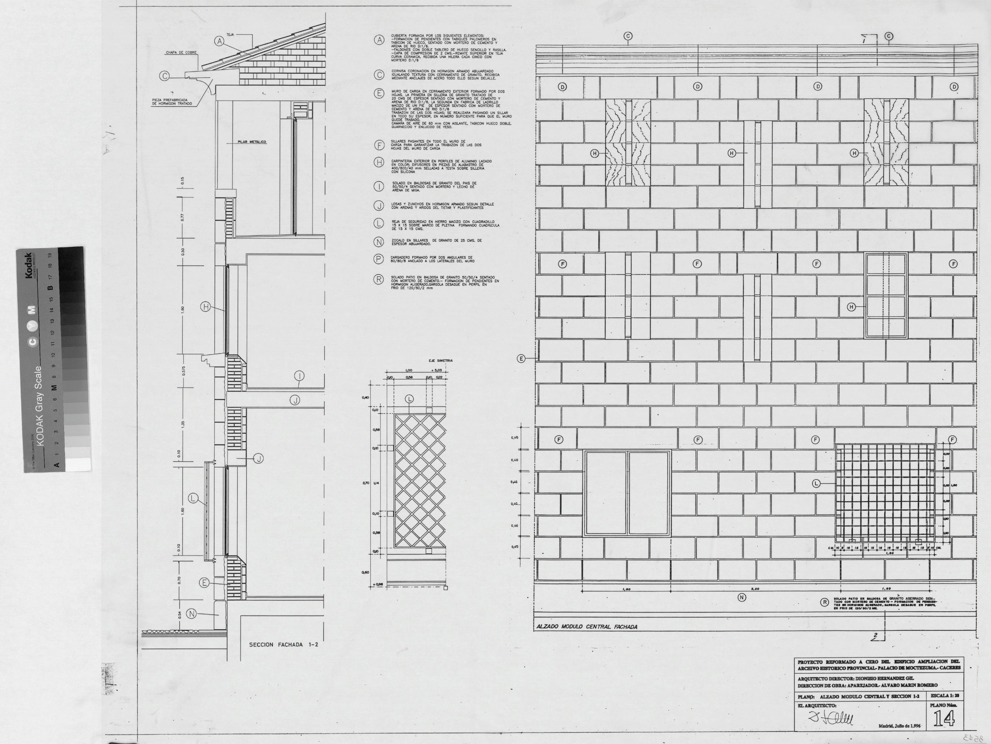 PALACIO DE MOCTEZUMA (ARCHIVO HISTORICO PROVINCIAL DE CACERES): ALZADO MODULO CENTRAL Y SECCION 1-3