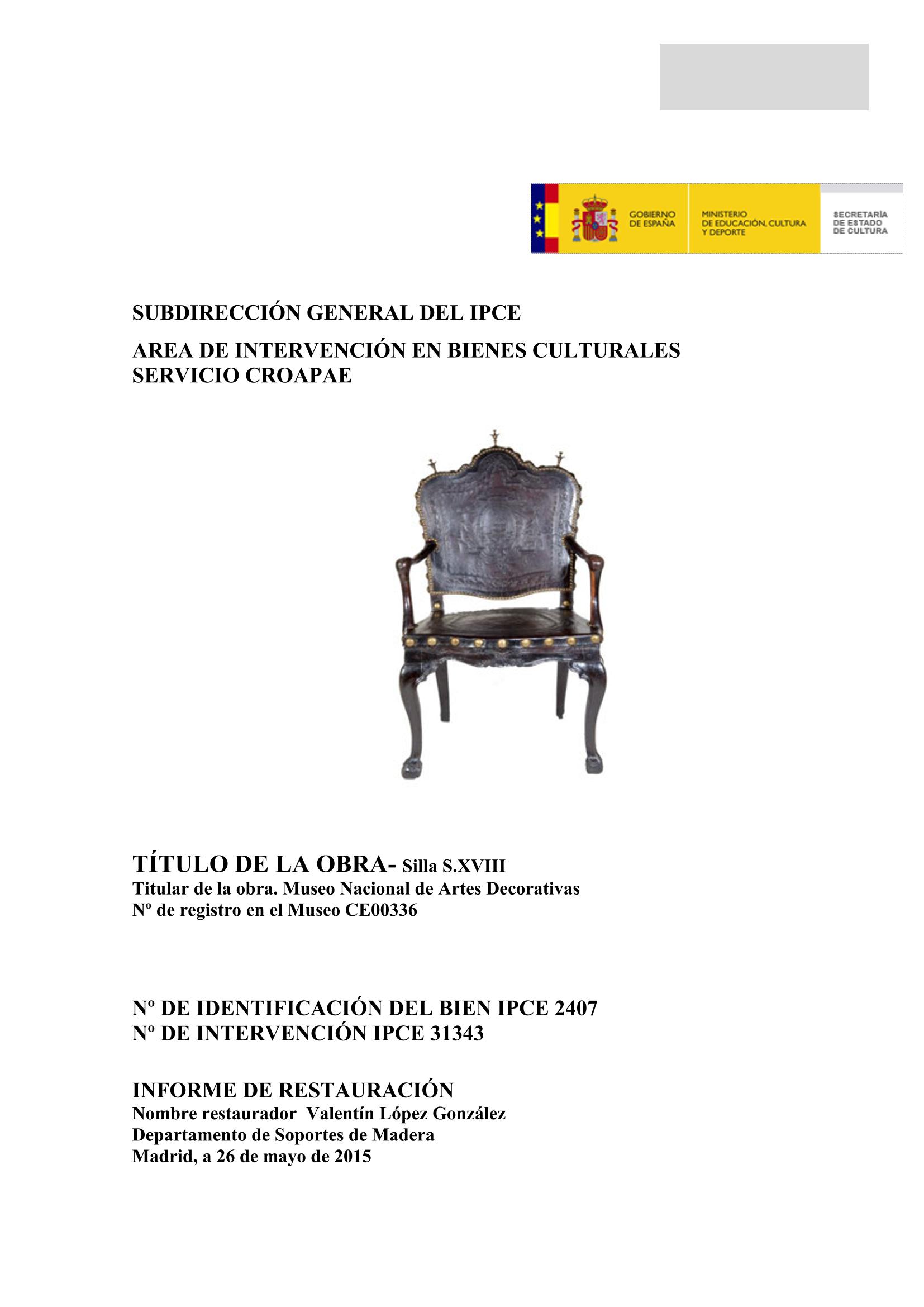 Restauración de una silla del siglo XVIII procedente del Museo de Artes Decorativas (Madrid)