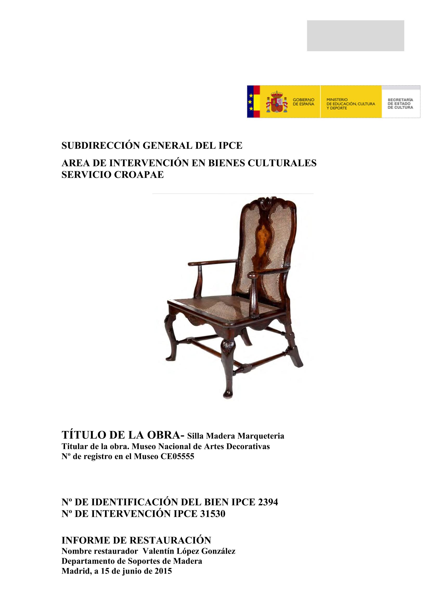 Restauración de una silla de madera de marquetería del siglo XVIII procedente del Museo Nacional de Artes Decorativas (Madrid)