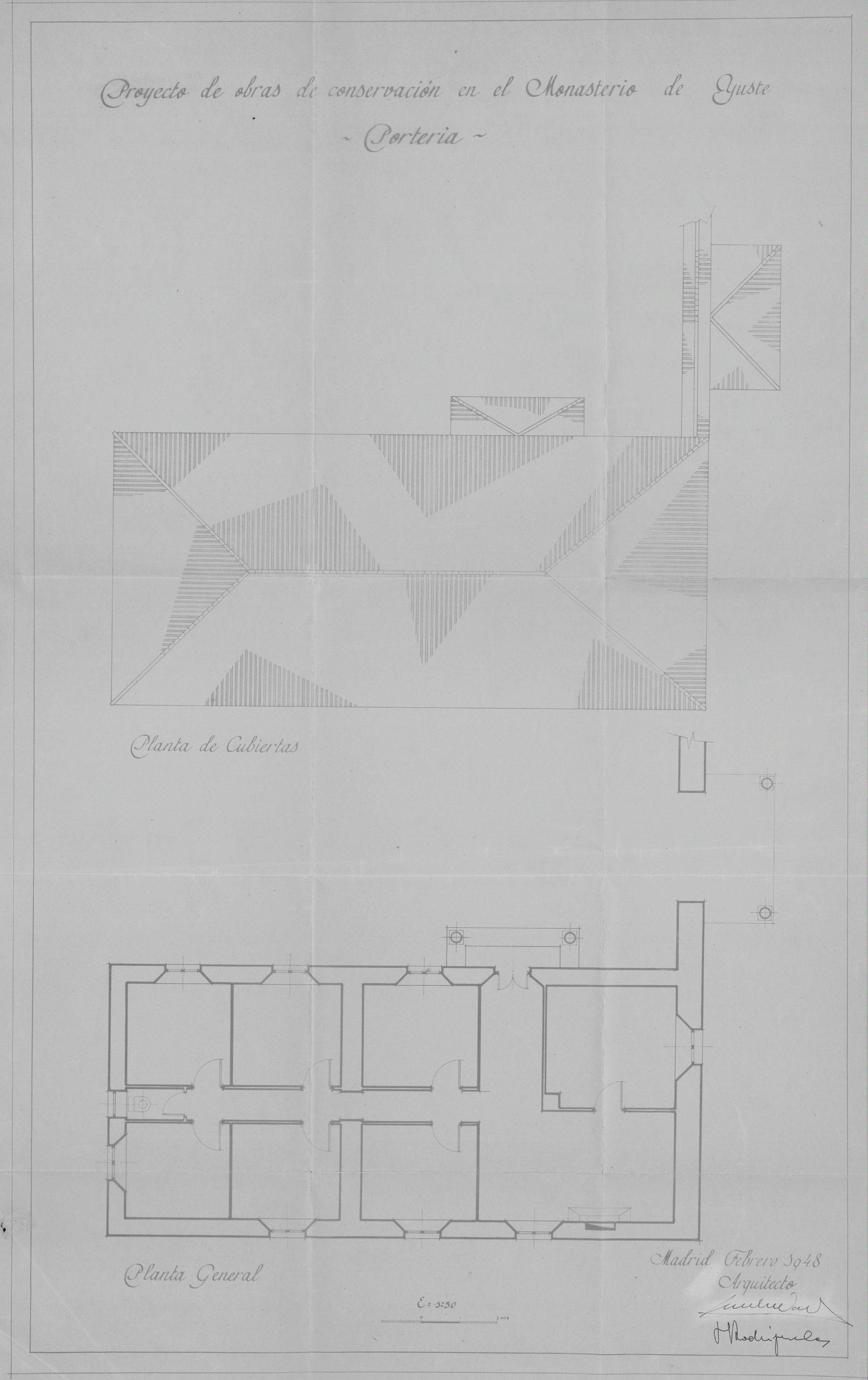 Monasterio de Yuste (Caceres) -Obras de Conservación- Porteria-: Planta General Planta de Cubiertas