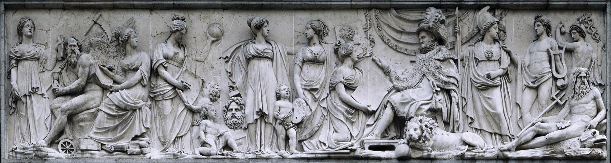 Restauración del relieve "Fernando VII recibiendo los tributos de Minerva y las Bellas Artes" de la Puerta de Velázquez del Museo Nacional del Prado (Madrid)