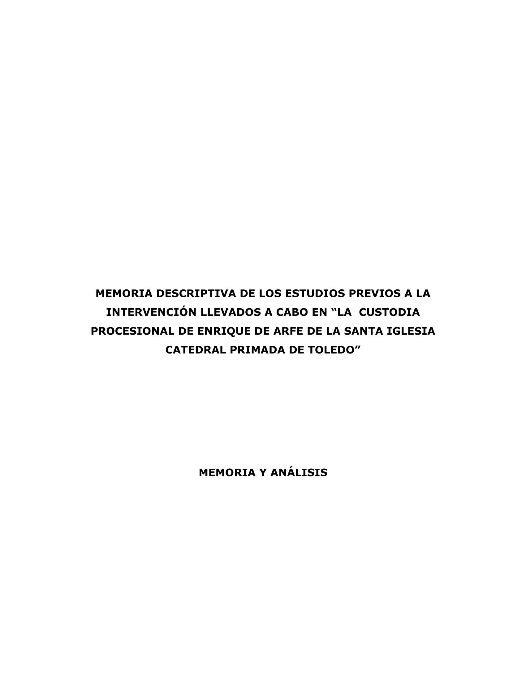 Estudios previos de restauración de la custodia procesional de Enrique de Arfe de la Santa Iglesia Catedral Primada de Toledo