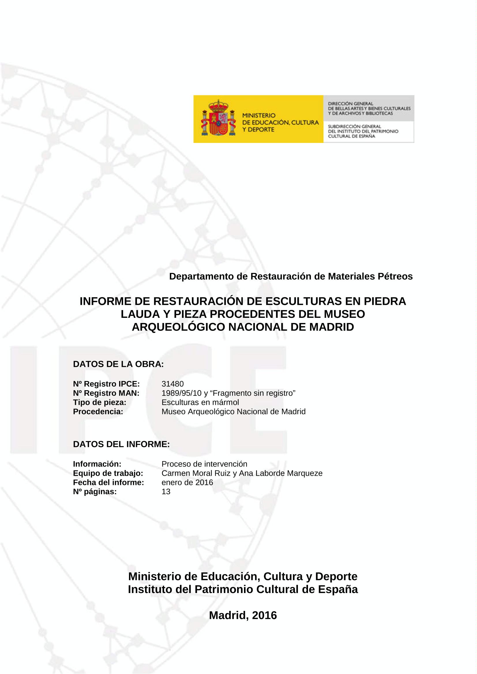 Restauración de una lauda y una pieza sin registrar procedentes del Museo Arqueológico Nacional (Madrid)
