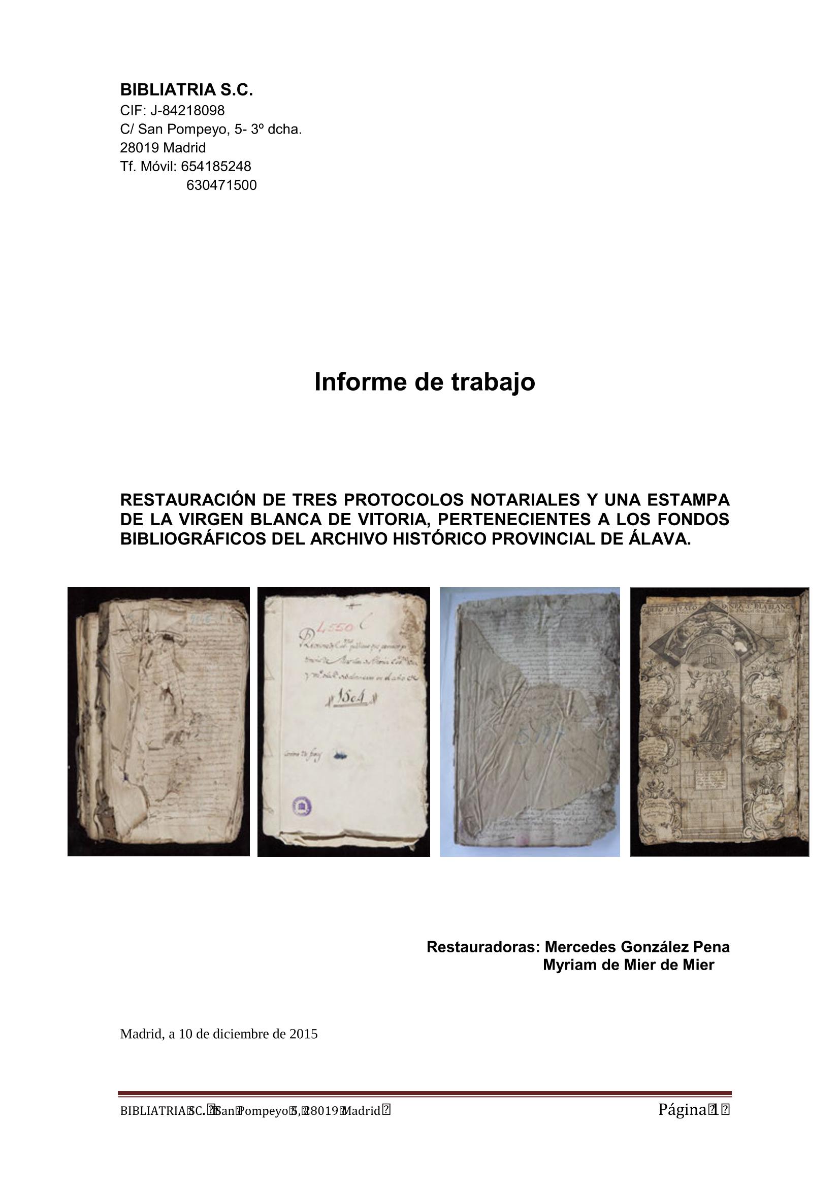 Restauración de tres protocolos notariales del siglo XVI y una estampa de la Virgen Blanca de Vitoria procedentes del Archivo Histórico Provincial de Álava