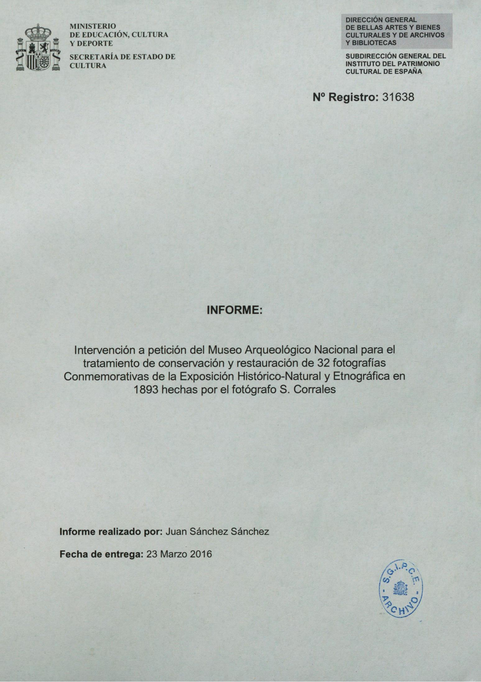Restauración de treinta y dos fotografías conmemorativas de la Exposición Histórico-Natural y Etnográfica de 1893, del fotógrafo S. Corrales, pertenecientes al Museo Arqueológico Nacional (Madrid)